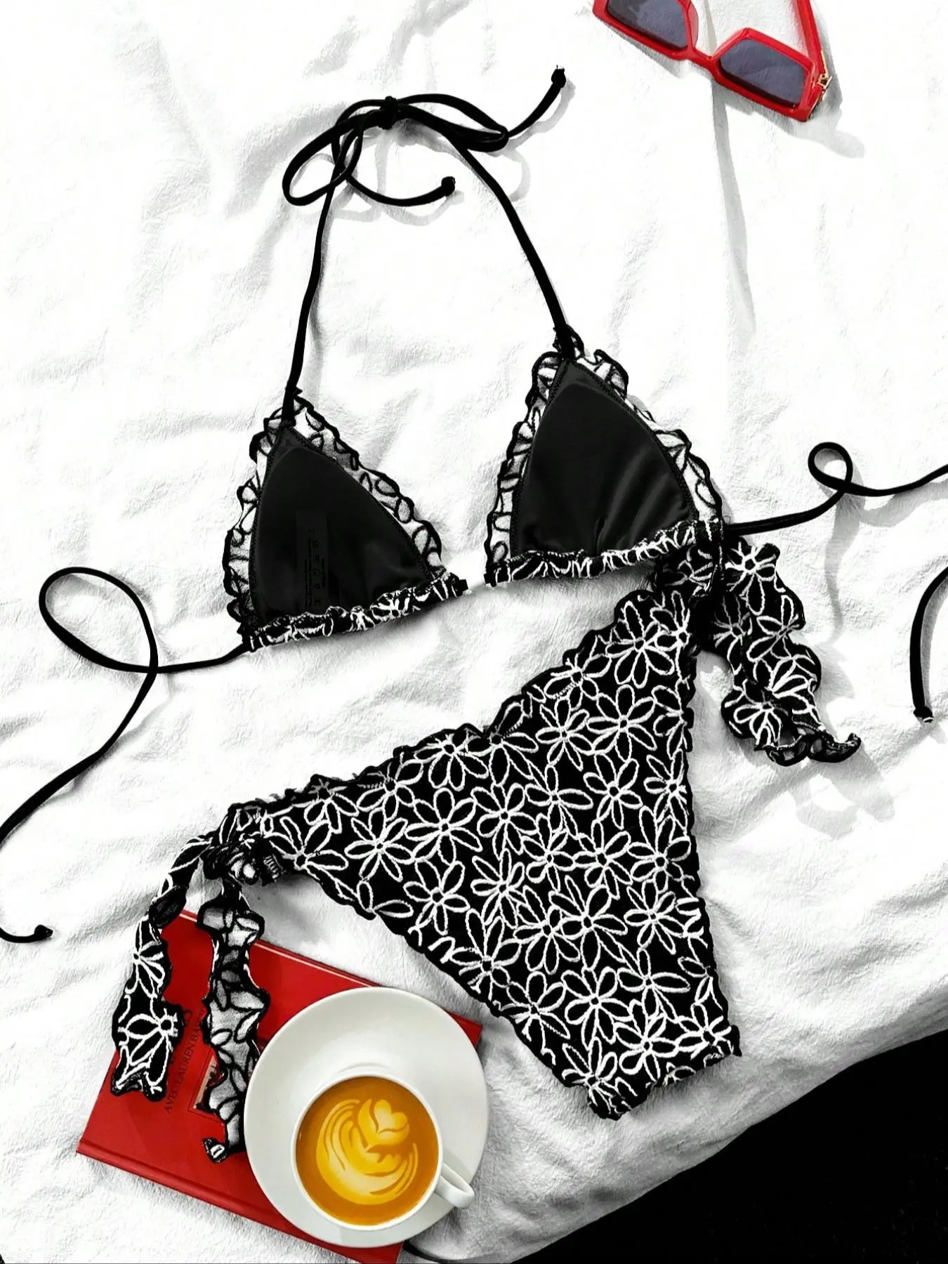 ·Sexy Halter Bikini Top: The bikini features a classic halter top, eyelet openwork, lace up, providing a minimalist and timeless look. The triangle shape flatters the bust and allows for adjustable coverage and fit.