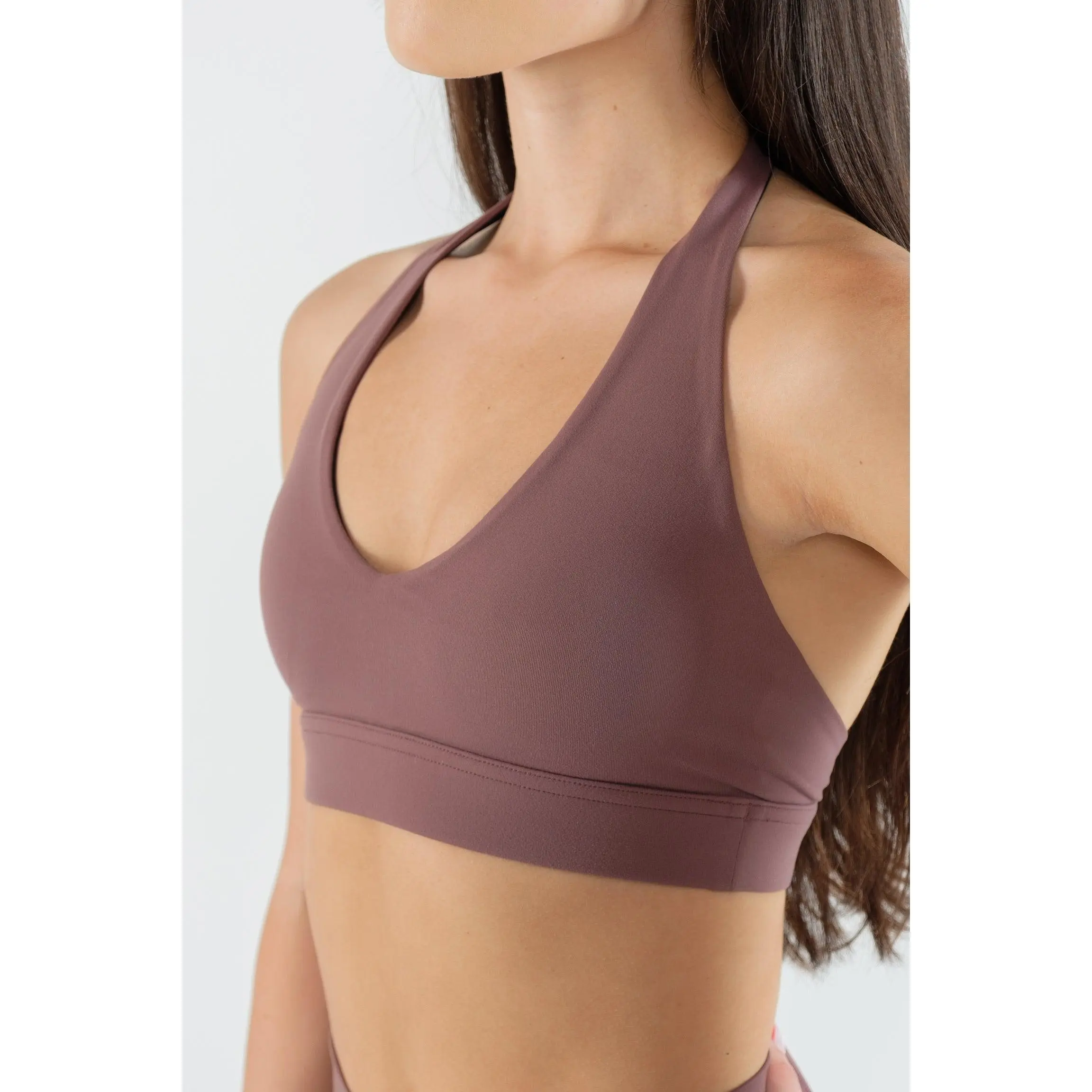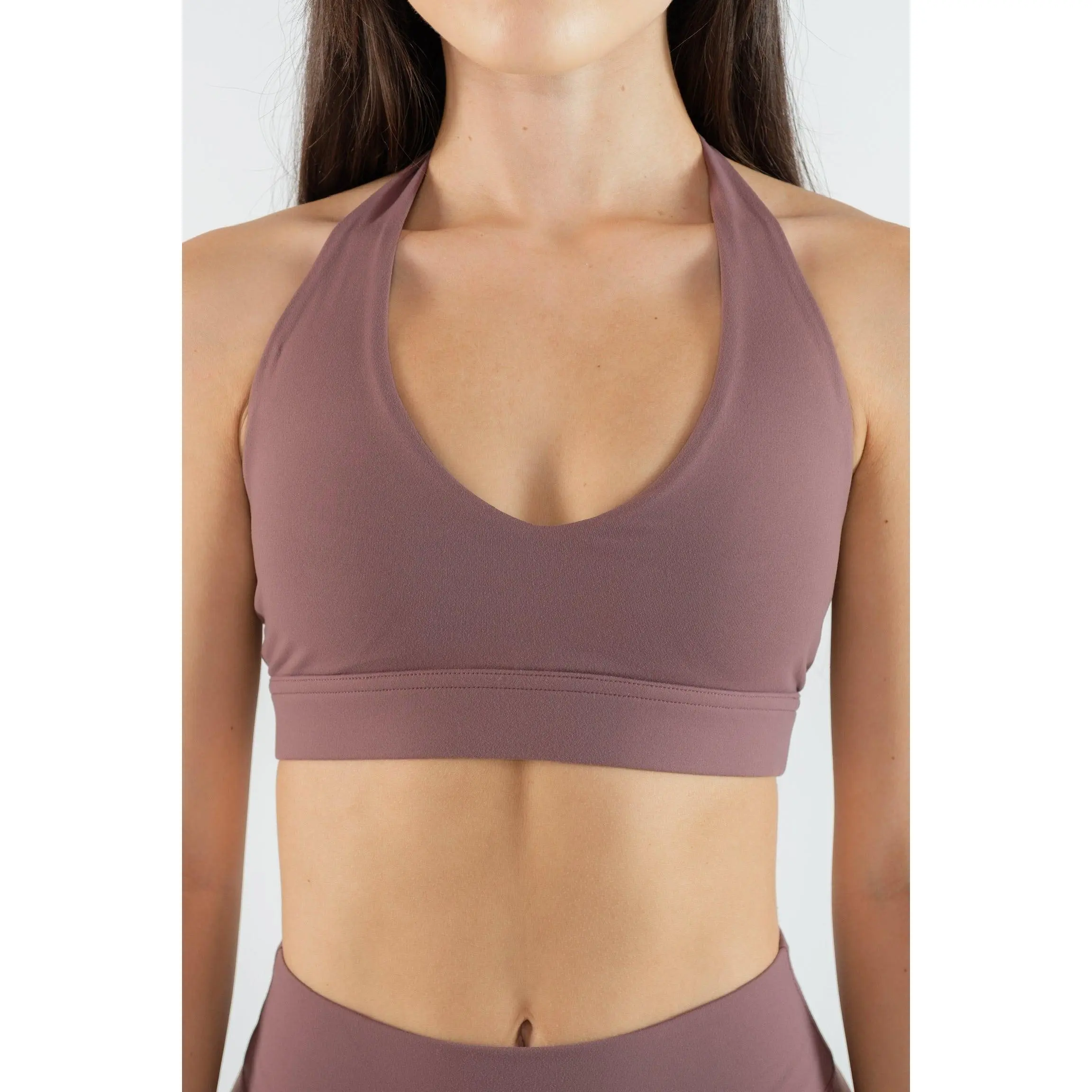 Introducing our new Halter Bra in Coconut Shell. This halter bra was designed with a tapered back to give you extra side coverage while flattering your back and shoulders. It features an extremely elastic waistband to provide support comfortably. Pair with our Coconut Shell Pocket or Ruched Leggings to complete your look!