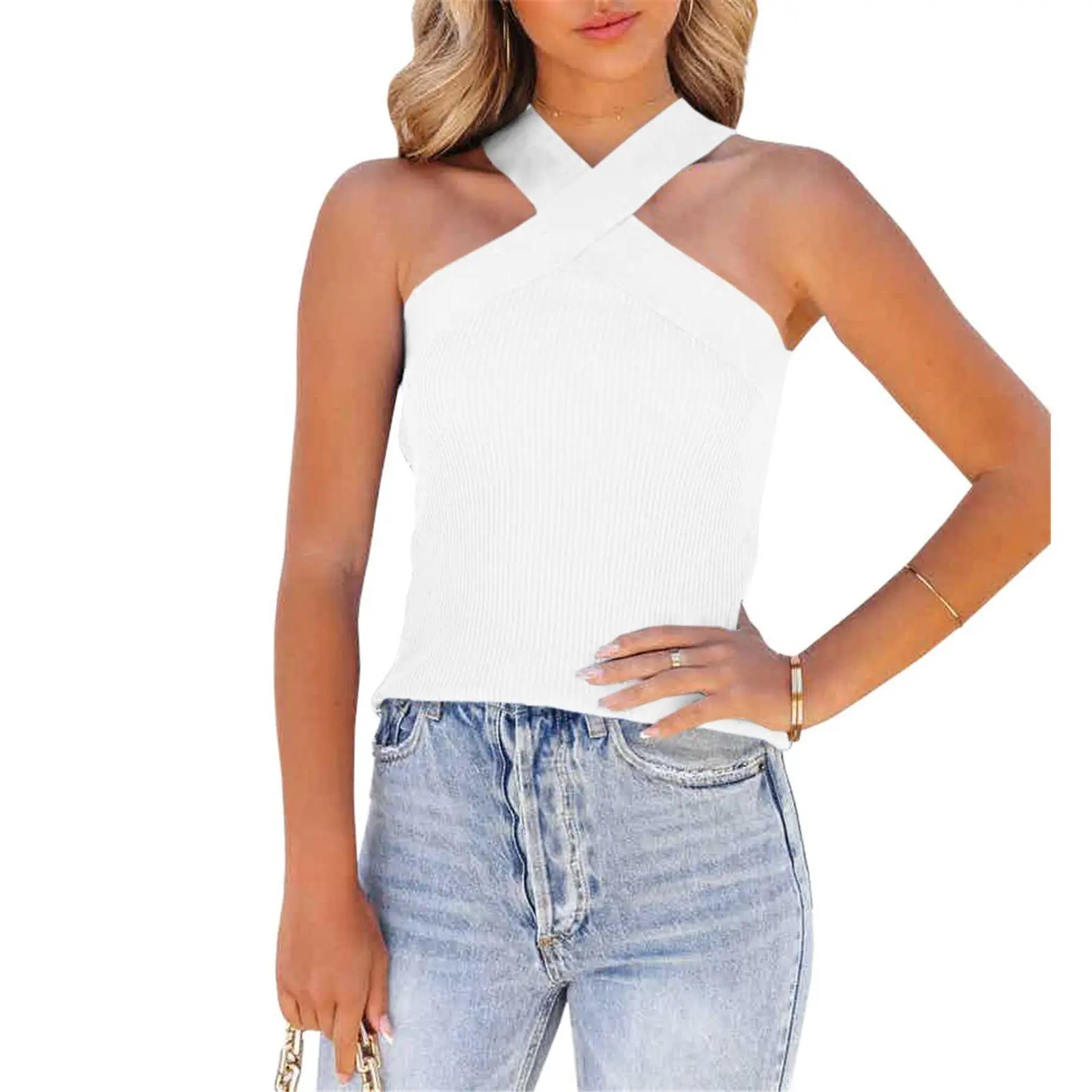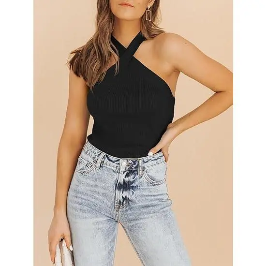 ·The sweater halter tops are soft, lightweight and stretchable, comfortable and convenient to wear.Criss cross crop top, crop tank top, solid rib knit halter crop top, sleeveless, this chic halter top is suitable for street wear this summer.And it can give you new fashion choices.