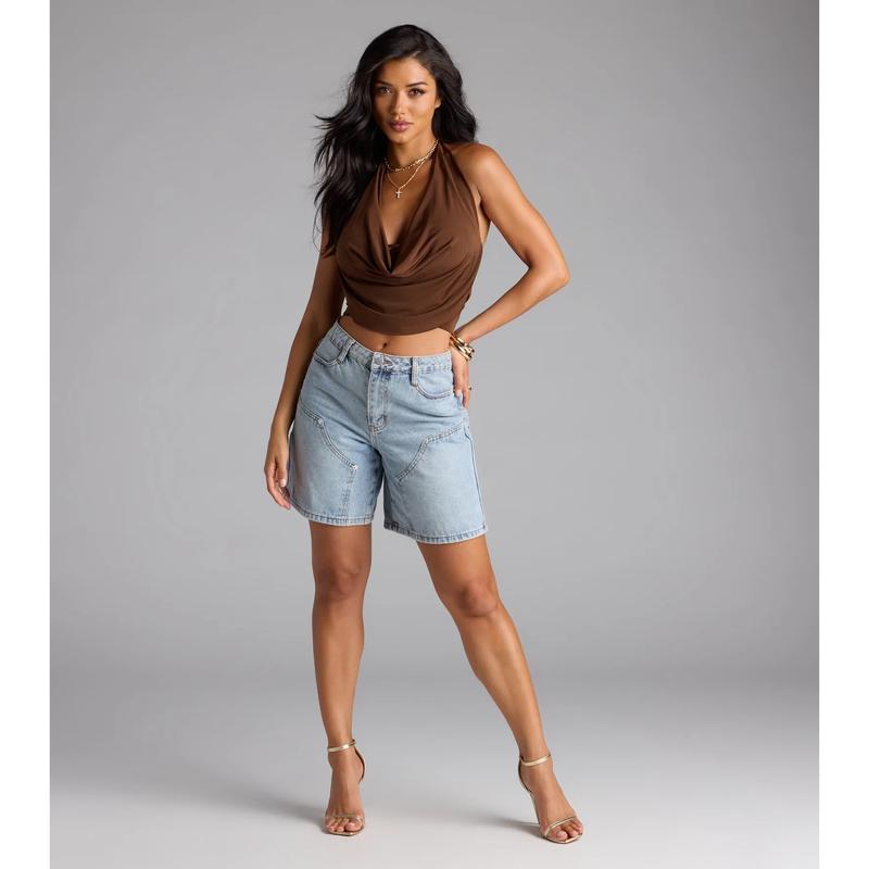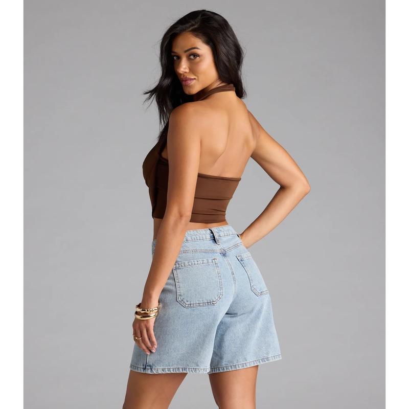 Take The Plunge Sleeveless Halter Crop Top