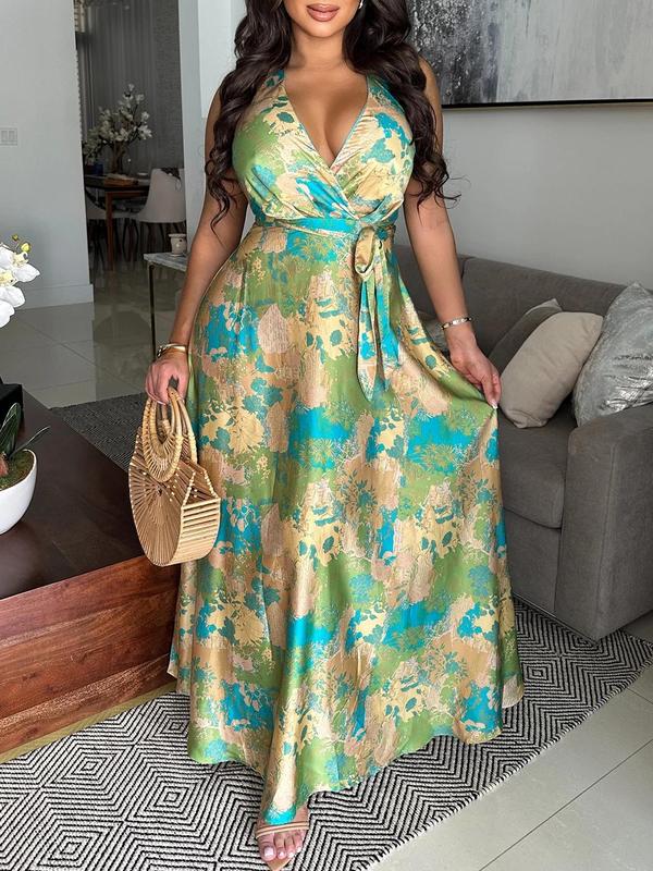 Women's All Over Print Halter Dress, Casual Boho Bohemian Sleeveless Backless Long Dress for Summer, Women's Clothing for Beach Holiday