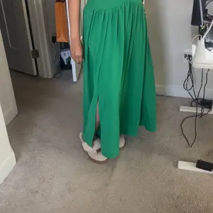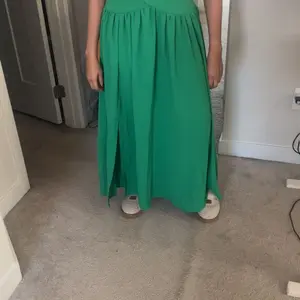 This dress is so gorgeous run and get this I love it! It’s stretchy and smooth and the material is a such great quality. I highly recommend. I’m in love it’s flowy and has a split on the right side.