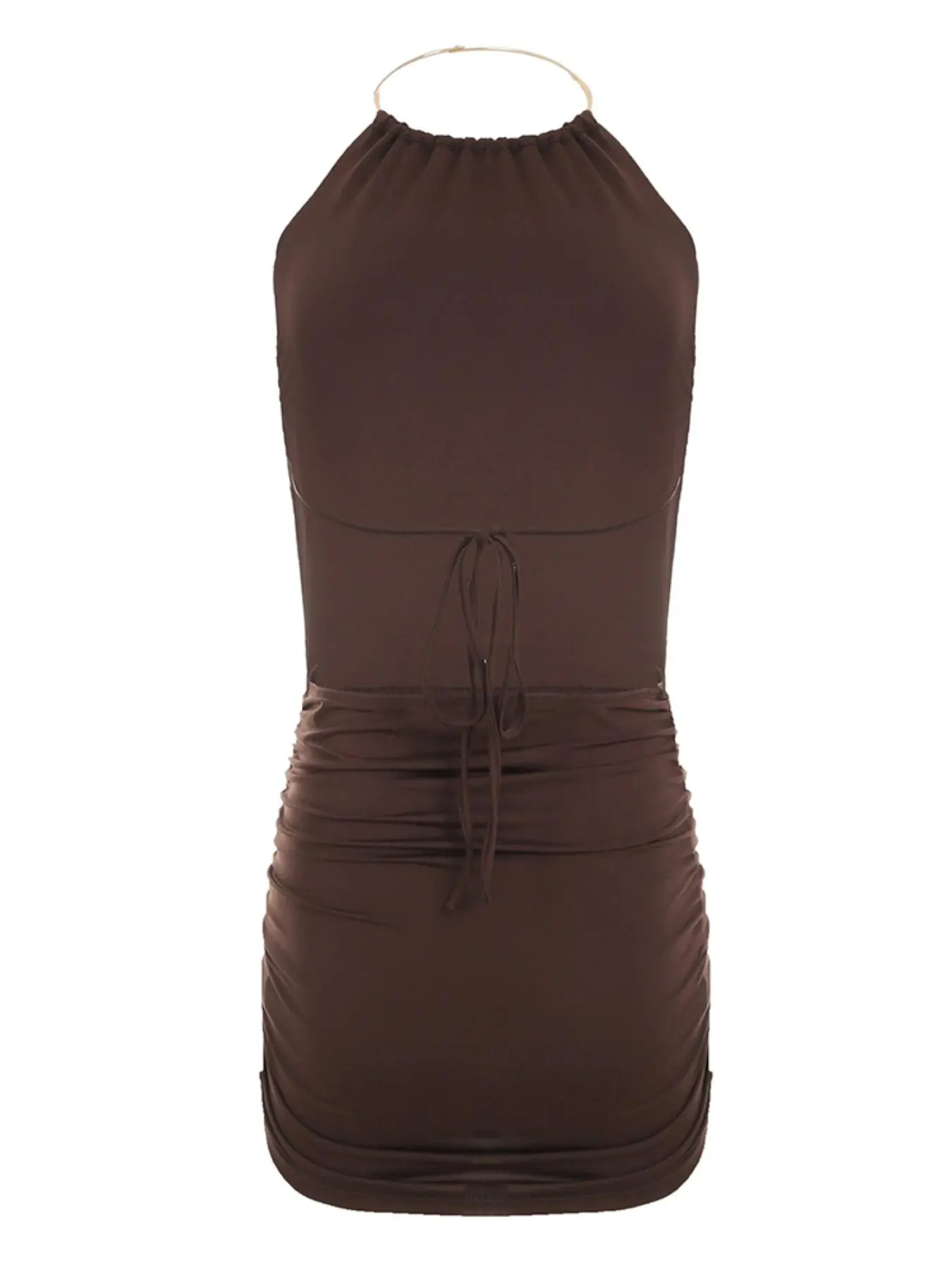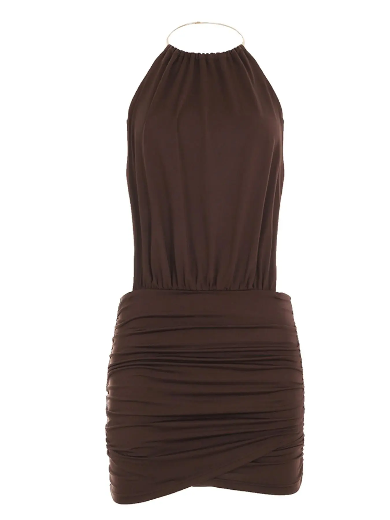 Women's Plain Halter Neck Dress, Fashion Casual Sleeveless Short Dress for Party Club Dating Wear, Ladies Summer Clothes #summerdress #cocktaildress #shortdress #ohpollydresses #loungedresses #hotdresses #clubdress #fashiondress #holidaypartyoutfitinspo #nightoutdress