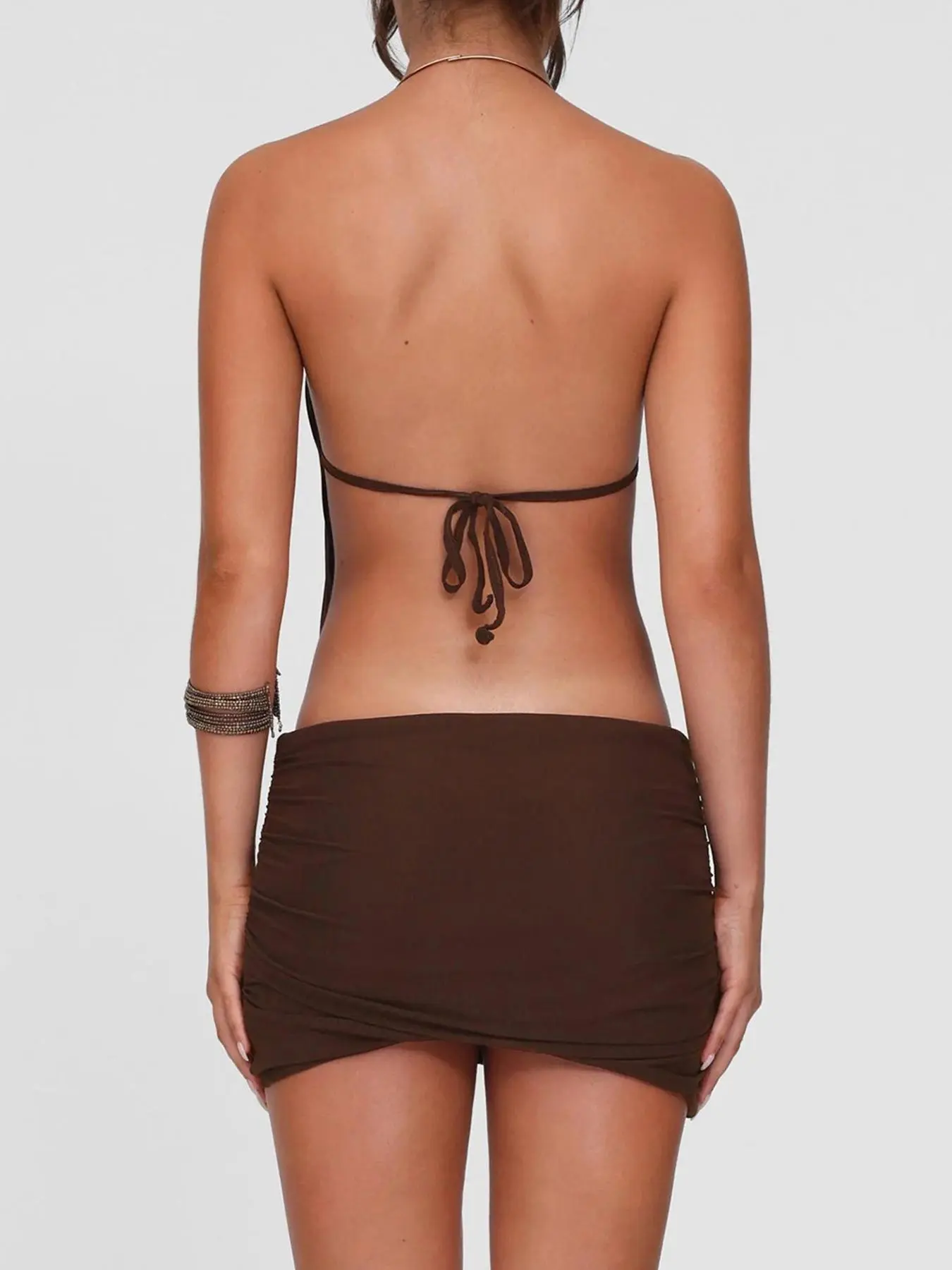 Women's Plain   Halter Neck Dress, Fashion Casual Sleeveless Short Dress for Party Club Dating Wear, Ladies Summer Clothes