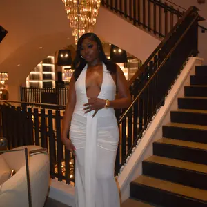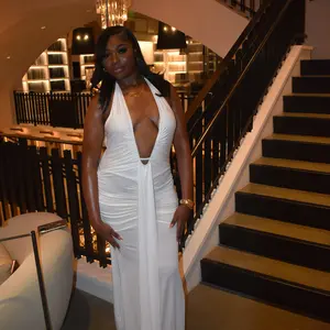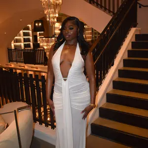 ใChic Necklineใ: The deep V-neck and halter design create a striking silhouette, showcasing your collarbone and enhancing your neckline.