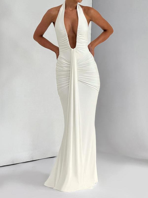 Women's Solid Color Halter Neck Dress, Elegant Sleeveless Dress for Party Club Dating Wear, Ladies Summer Clothes