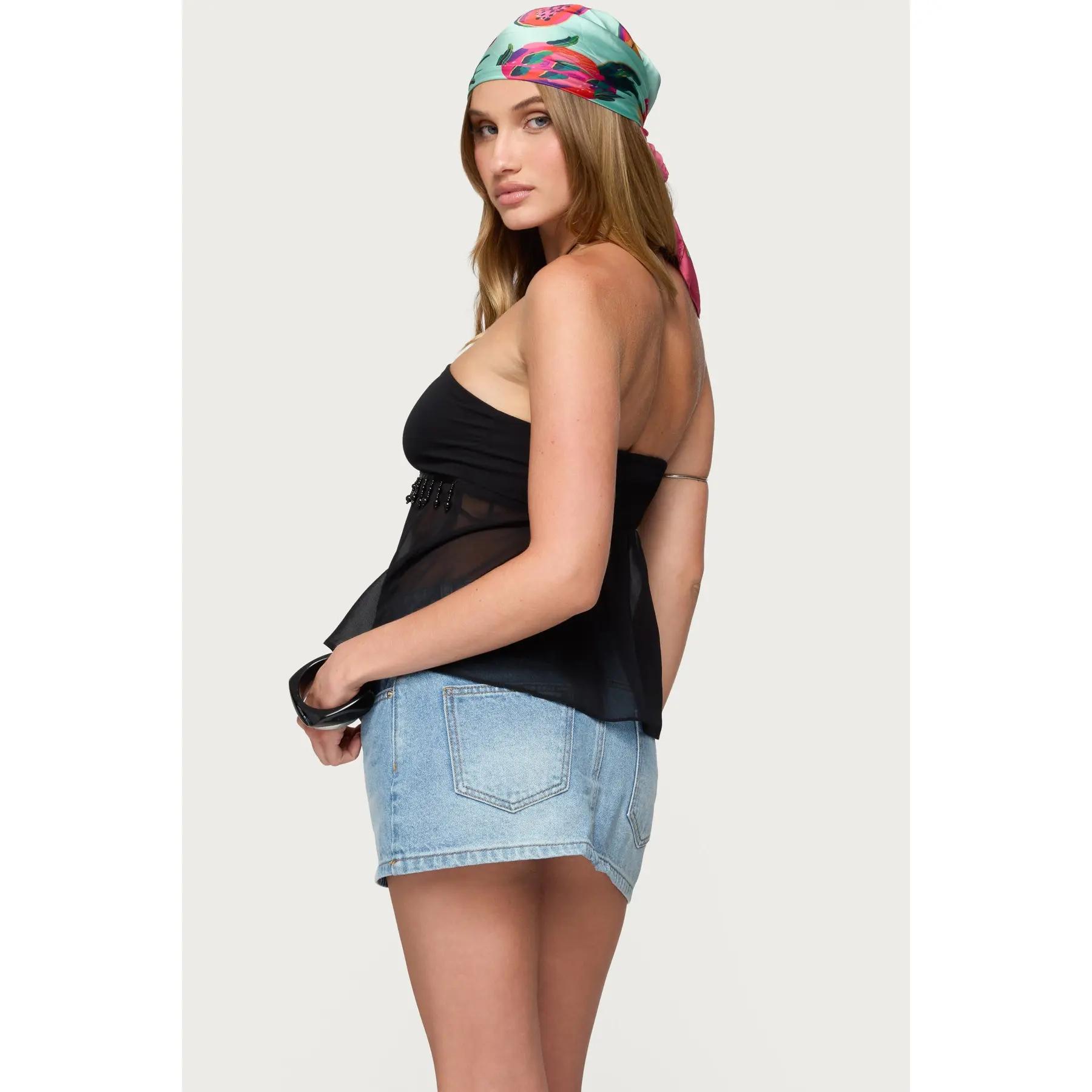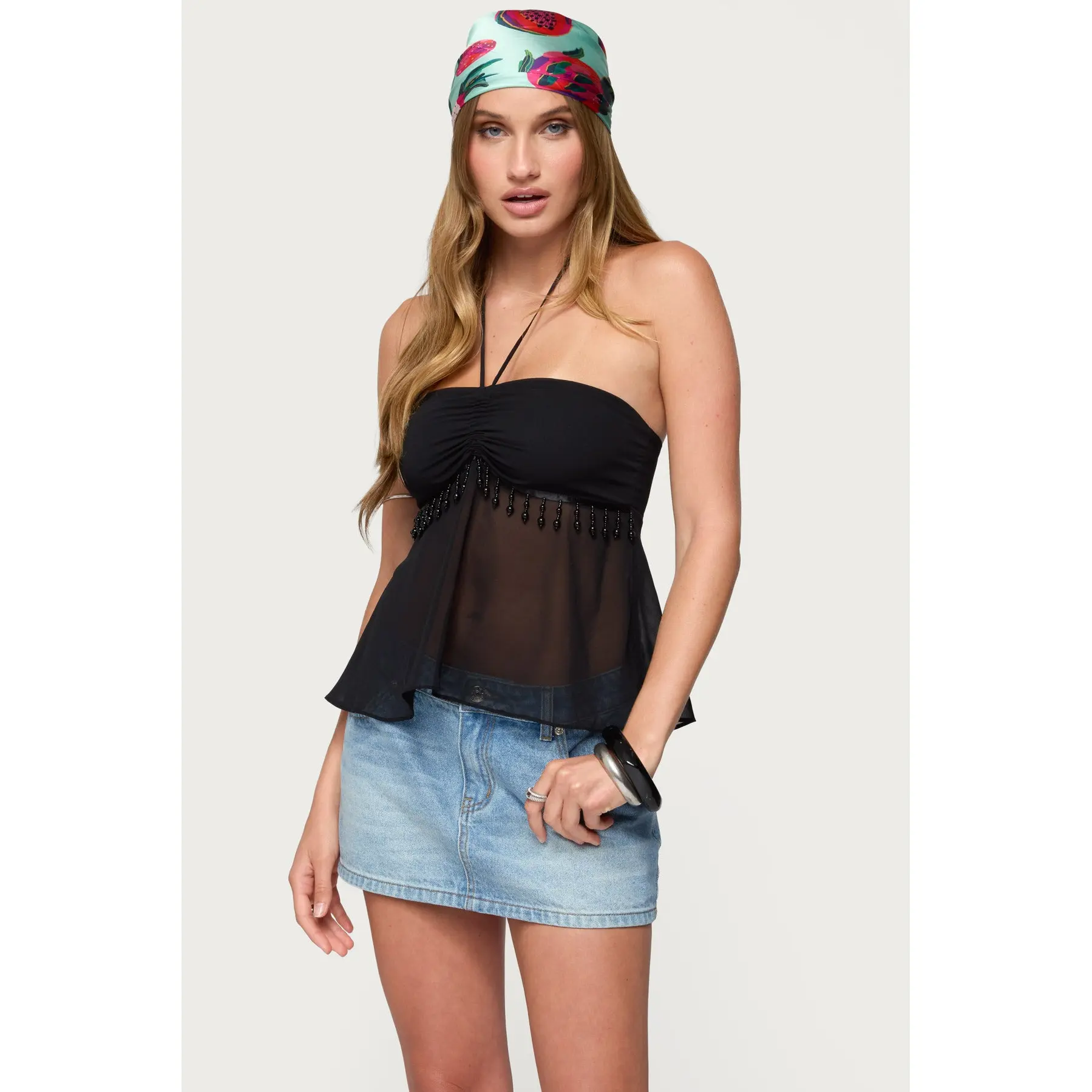 5. Sheer Chiffon Babydoll Halter Top