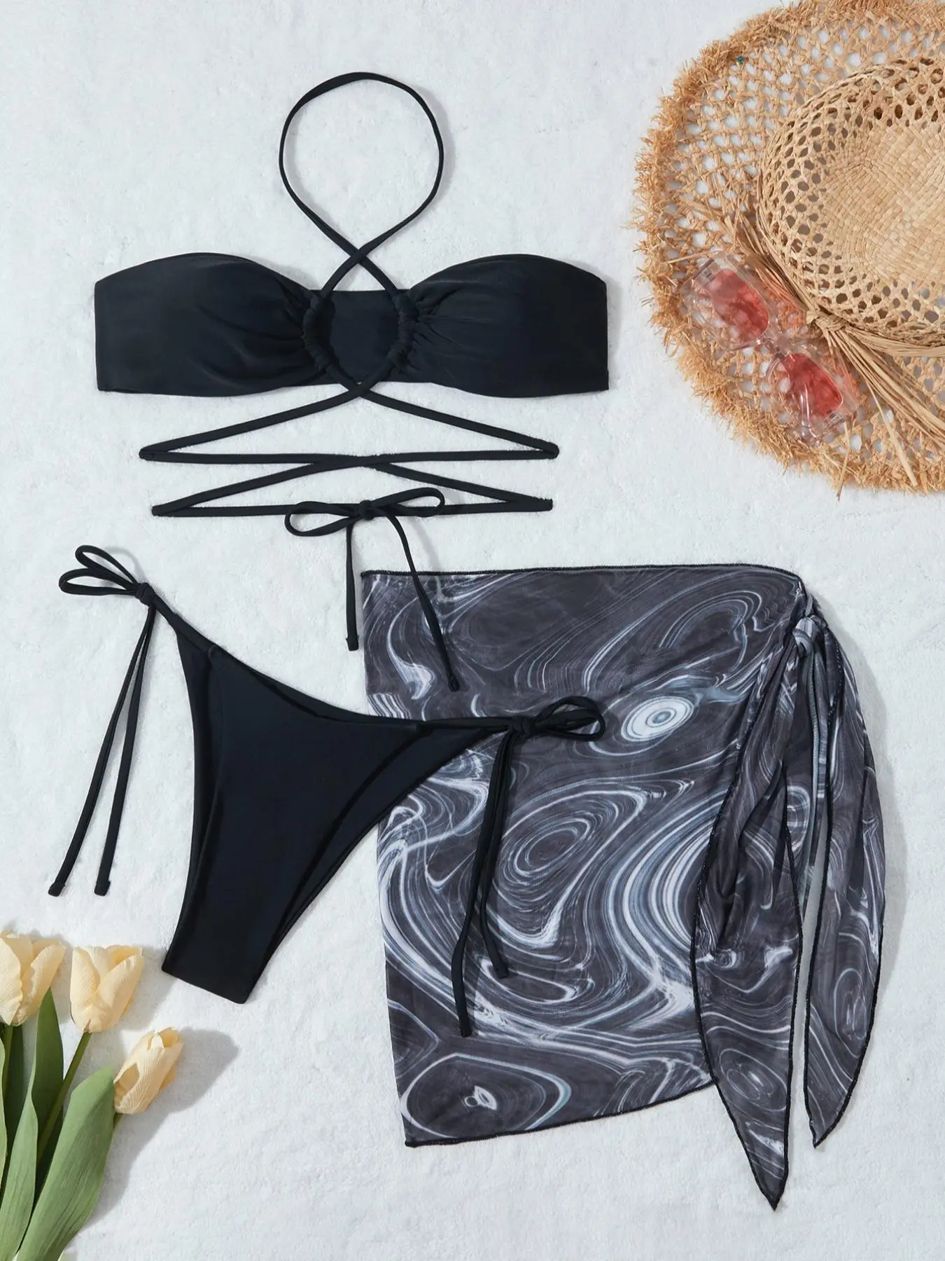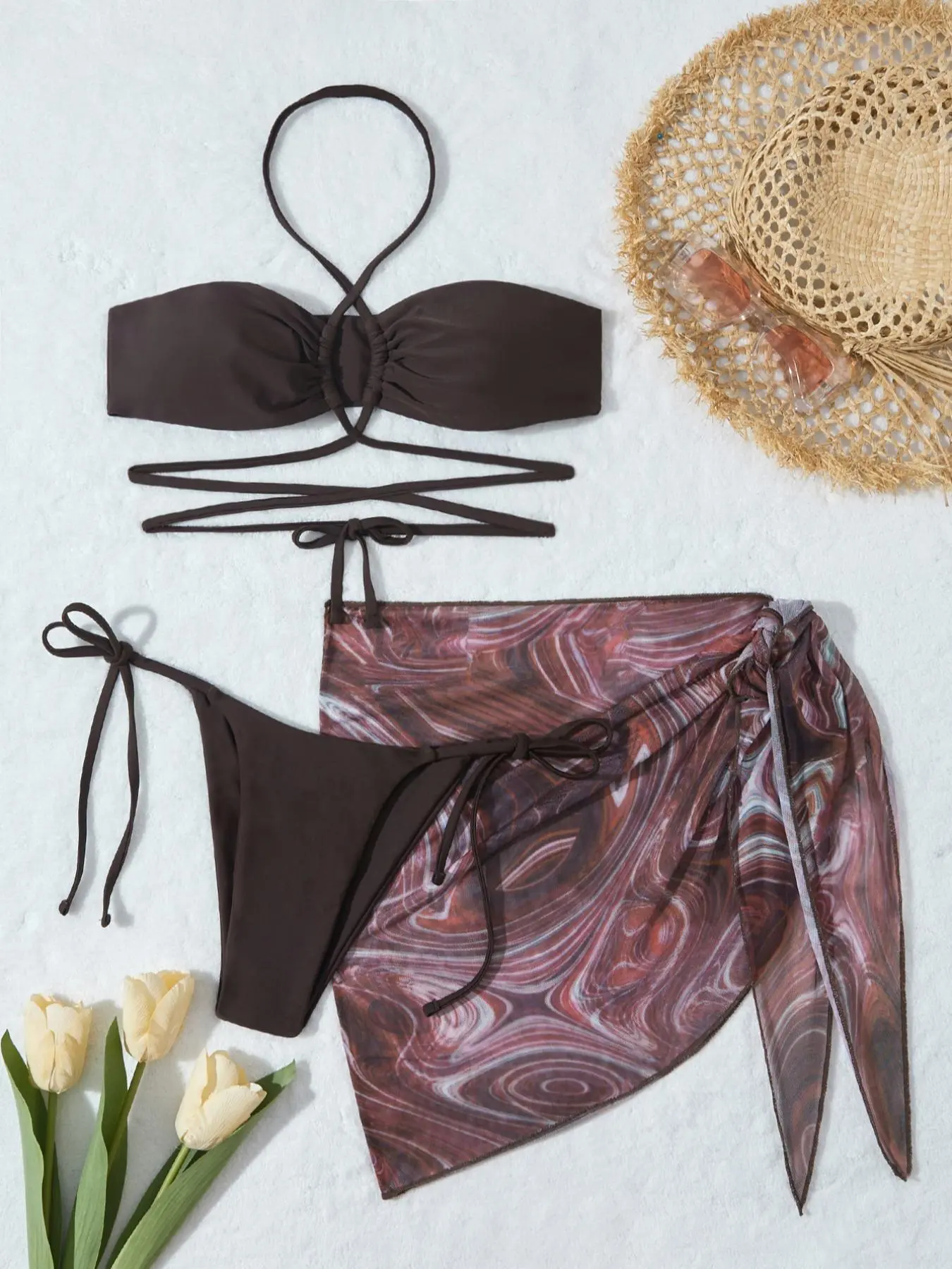 very cute bikini, its very skimpy, its either crack out or bush out. i was a little confused how to tie the top but i got it, if you have a heavier chest you run the risk of a nip slip if you readjust, wear nip covers 🤞🏼. still sooo cute i will be wearing it.