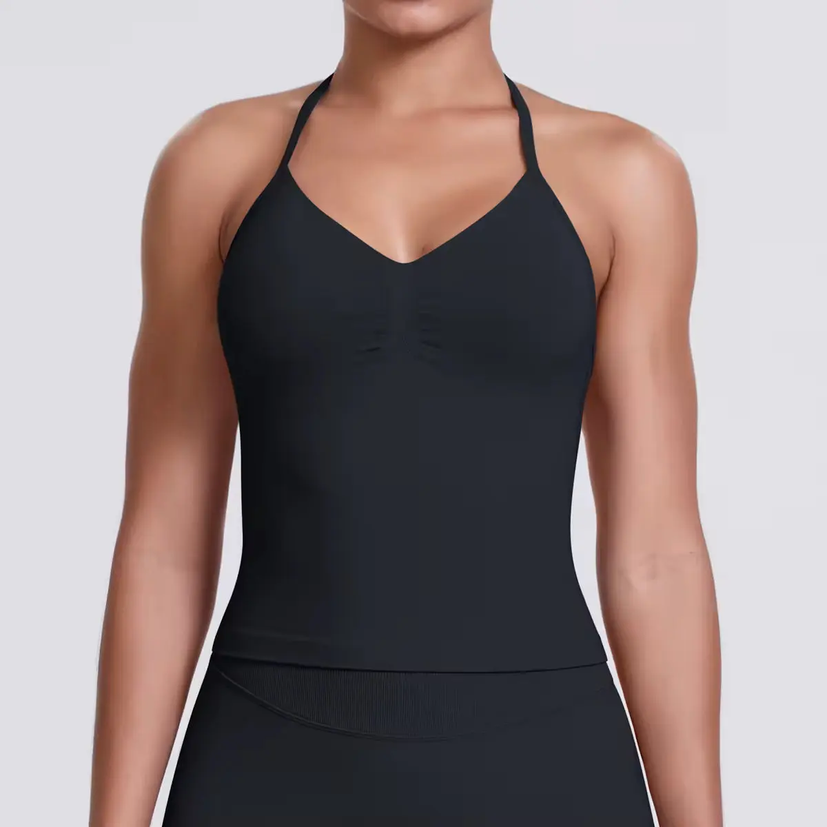 Flex Halter Top in Spandex & Nylon with V-neck Design & Removable Padding for Adjustable Support Versatile Solid Color for Casual Wear