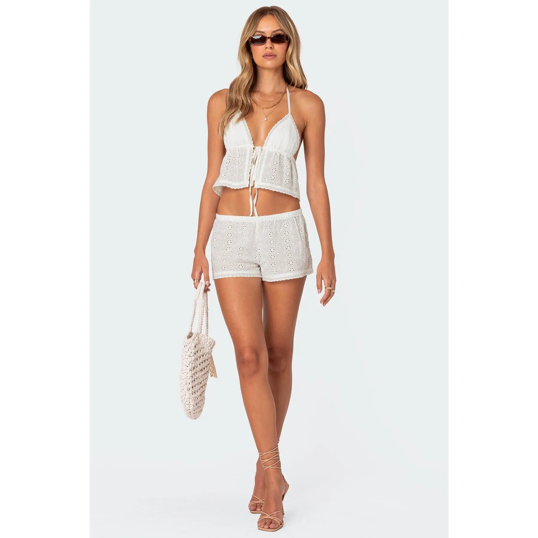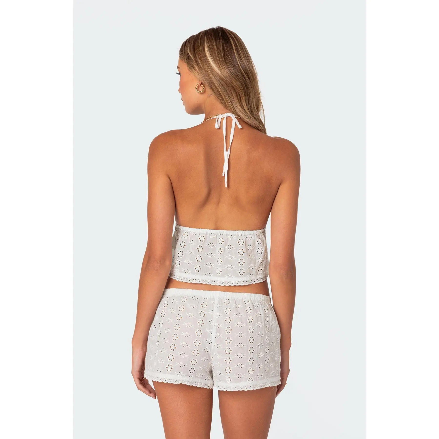 The dreamiest halter 🪽cute and sexy. The eyelet fabric makes it feel timeless