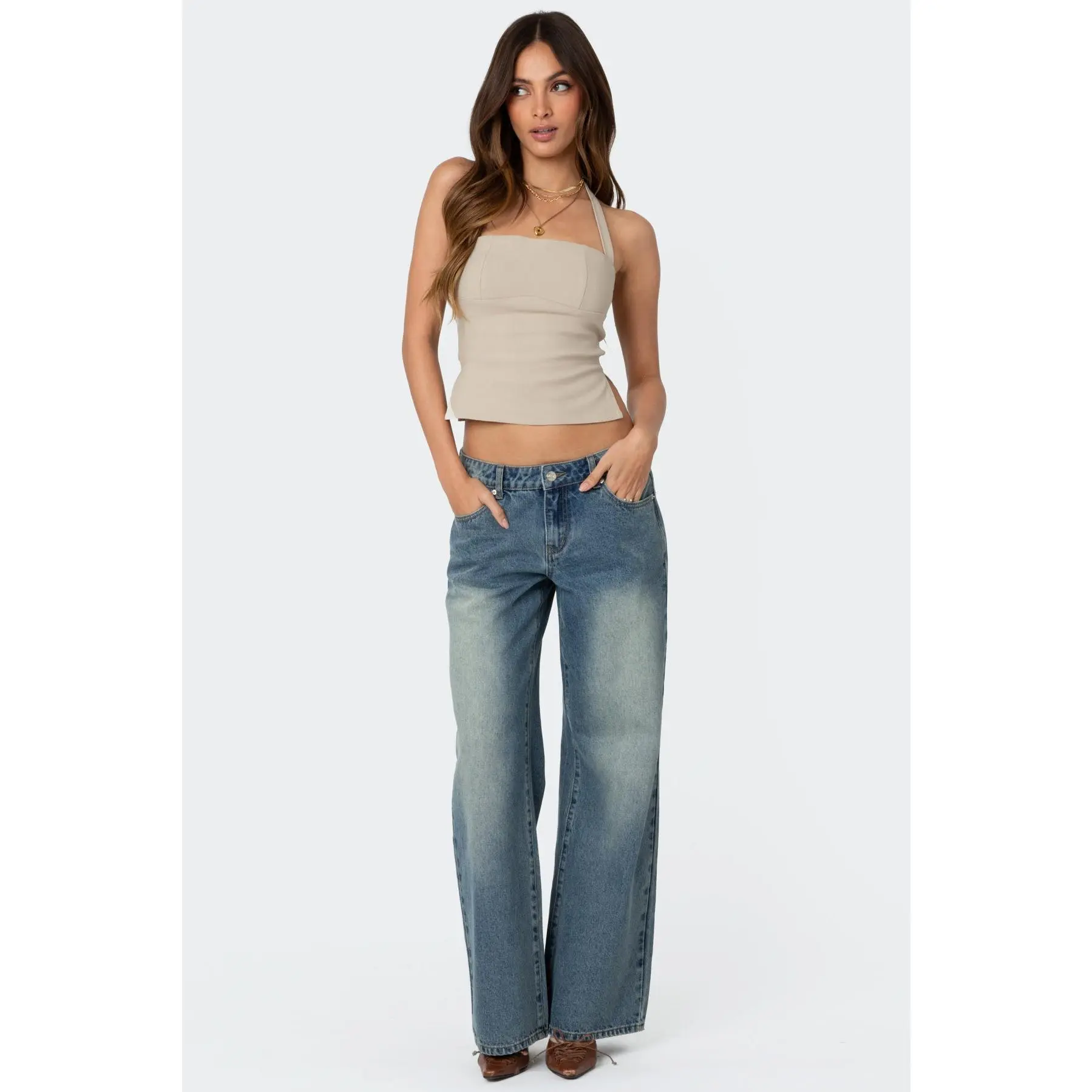 Really cute, love the fit and silhouette it gives, a breathable top and looks just like the photo. Comfortable fabric and a big fan of the topâs quality. The halter tie and side slits on the top add a lot to the overall look. Might recommend this to warmer skin tones if youâre on the paler side just because the beige might blend in/look a bit dull.