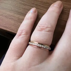 Love the simplicity of these rings and they make a great stack. I’ve purchased 3 silver rings, 2 rose gold, and 1 gold and the silver ones have been great. I’m a little disappointed in the rose gold and gold ones though. They are plated so I’m guessing it’s where the ends were put together about 2 weeks after wearing them the color rubbed/flaked off and shows a silver spot. Kind of annoying, but I still wear them regularly and try to keep the rubbed off spot on the underside of my finger. I’ll attach a picture of the 3 with the spots lined up. The silver ones don’t show this at all so I think I’ll stick with silver from now on.
