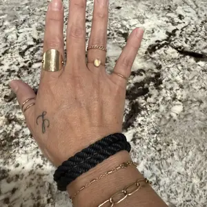 Bought this tiny hammered band originally for a midi ring. Ended up liking it better as a pinkie instead. It’s super cute and comfortable. Sometimes I layer it. So fun to change around my rings from Hello Adorn