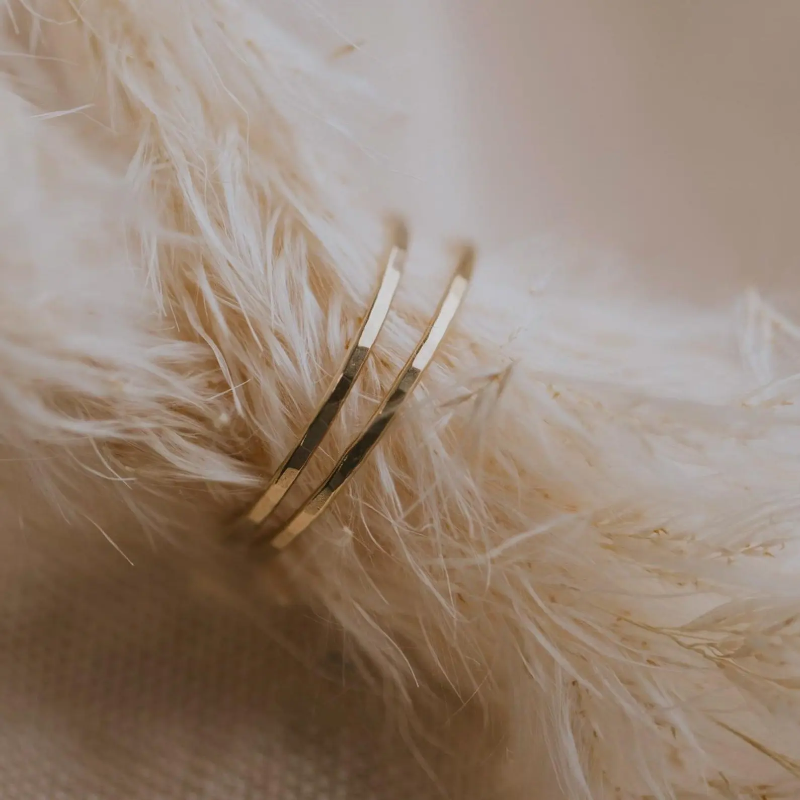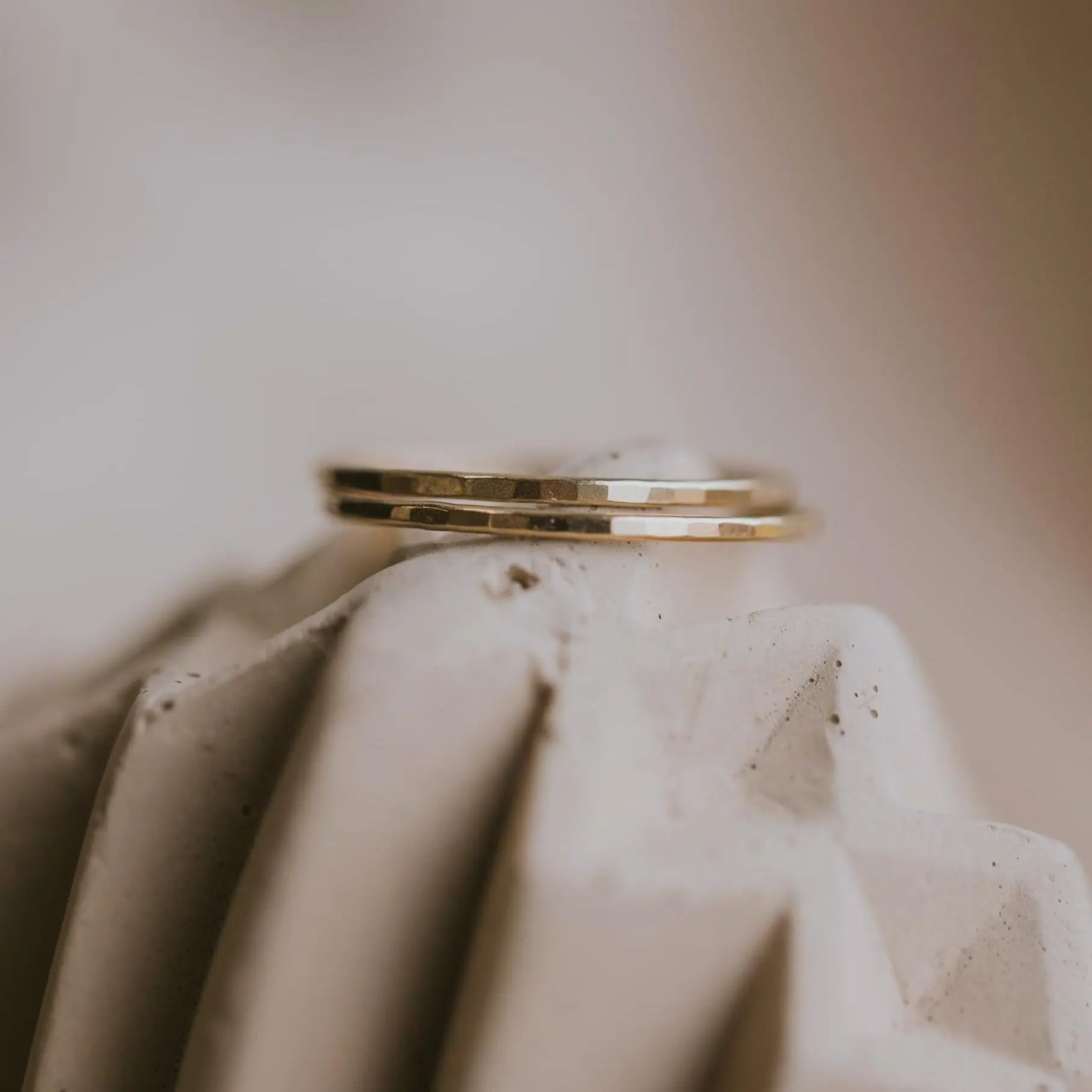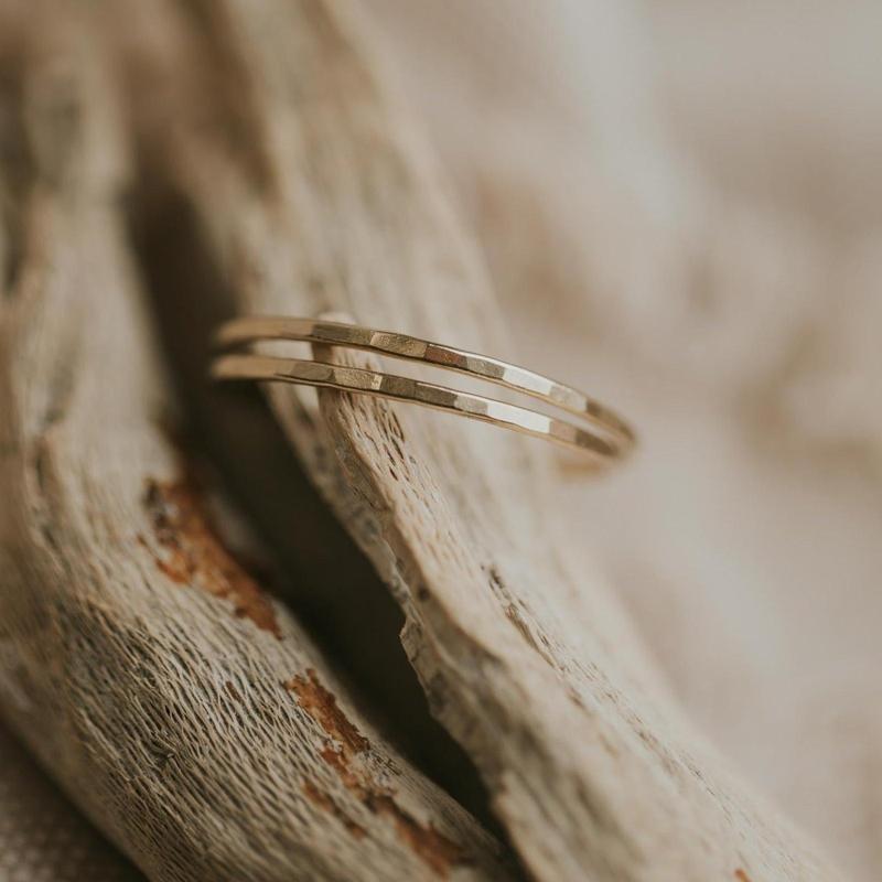 I have a number of stackable bands from HelloAdorn and the Tiny Hammered Band might be my new favorite! It has just enough detail to make it different but still is easy to layer with others!