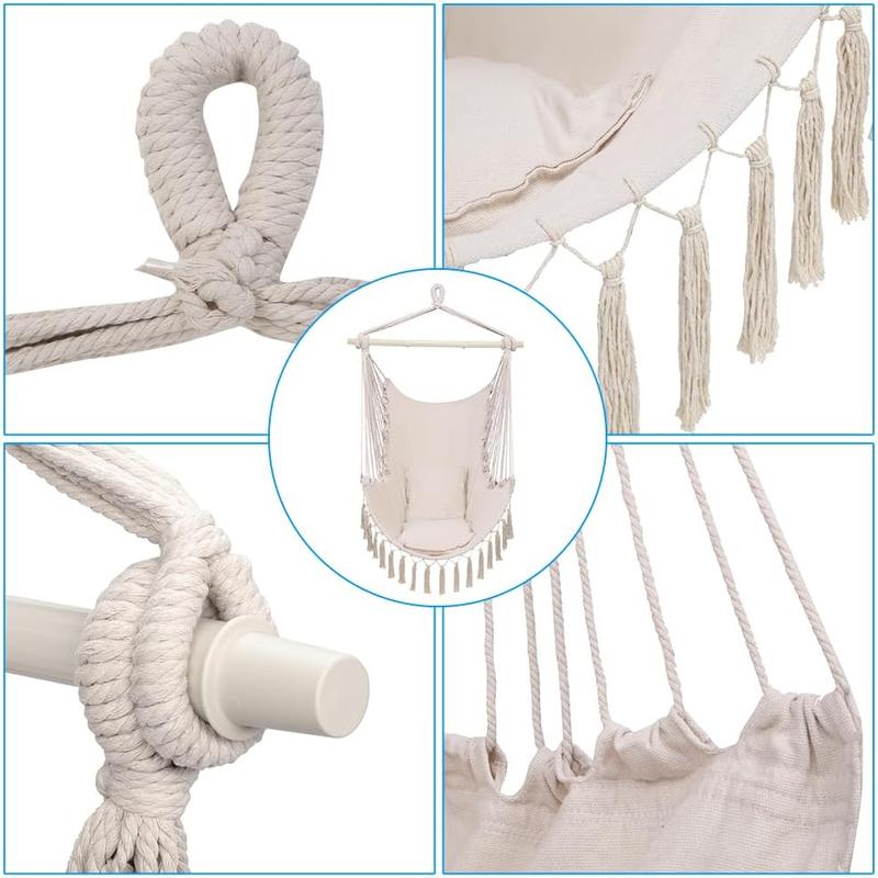·The hammock swing seat includes extra soft sponge cushions, providing a comfortable experience and relaxing moments.
