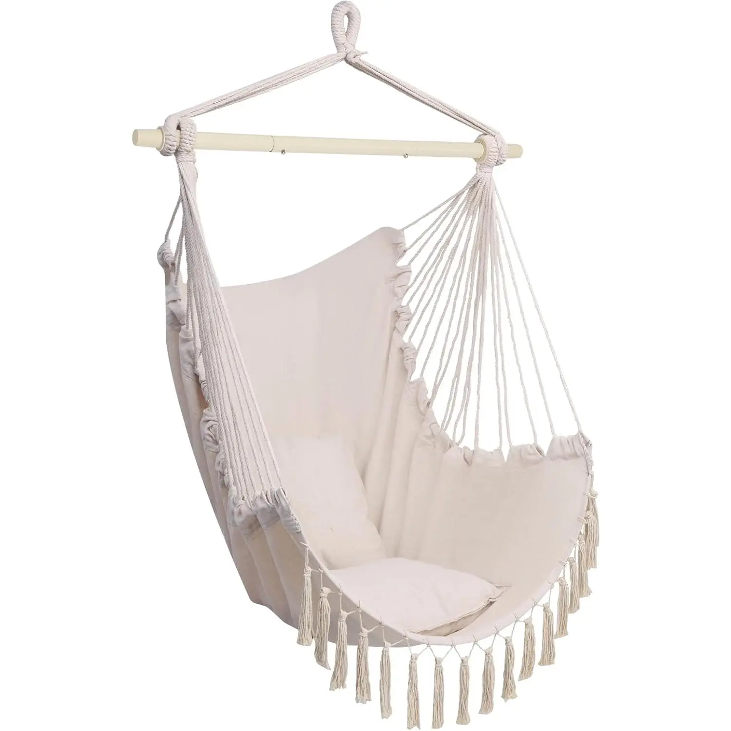 ·Made from premium, soft cotton canvas, the hanging swing seat offers a perfect spot for sitting or lying down. Ideal for reading, relaxing, or snuggling, it's perfect for your home, front yard, backyard, or patio.