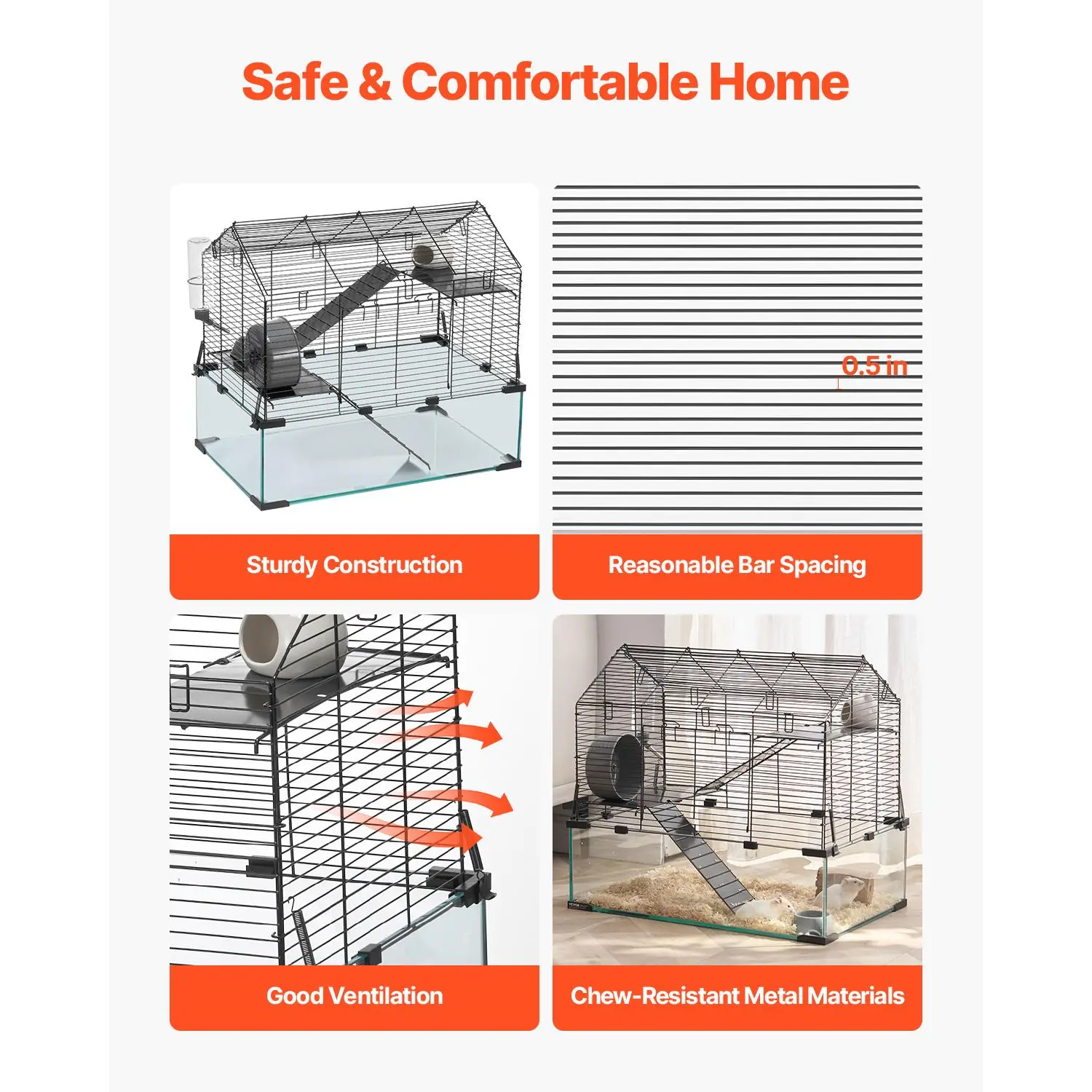 • Security & Durability: Constructed with sturdy metal materials, this hamster cage ensures a secure structure, preventing your hamster from chewing on the bars and extending the cage’s lifespan. It provides peace of mind by prioritizing your pet’s security.