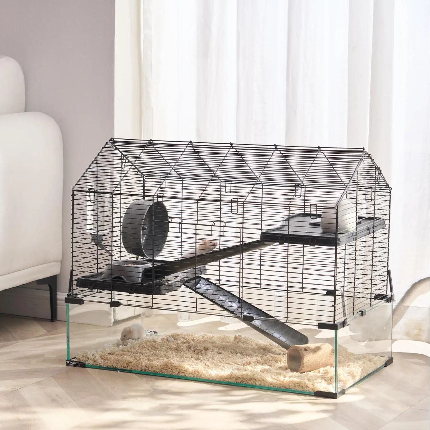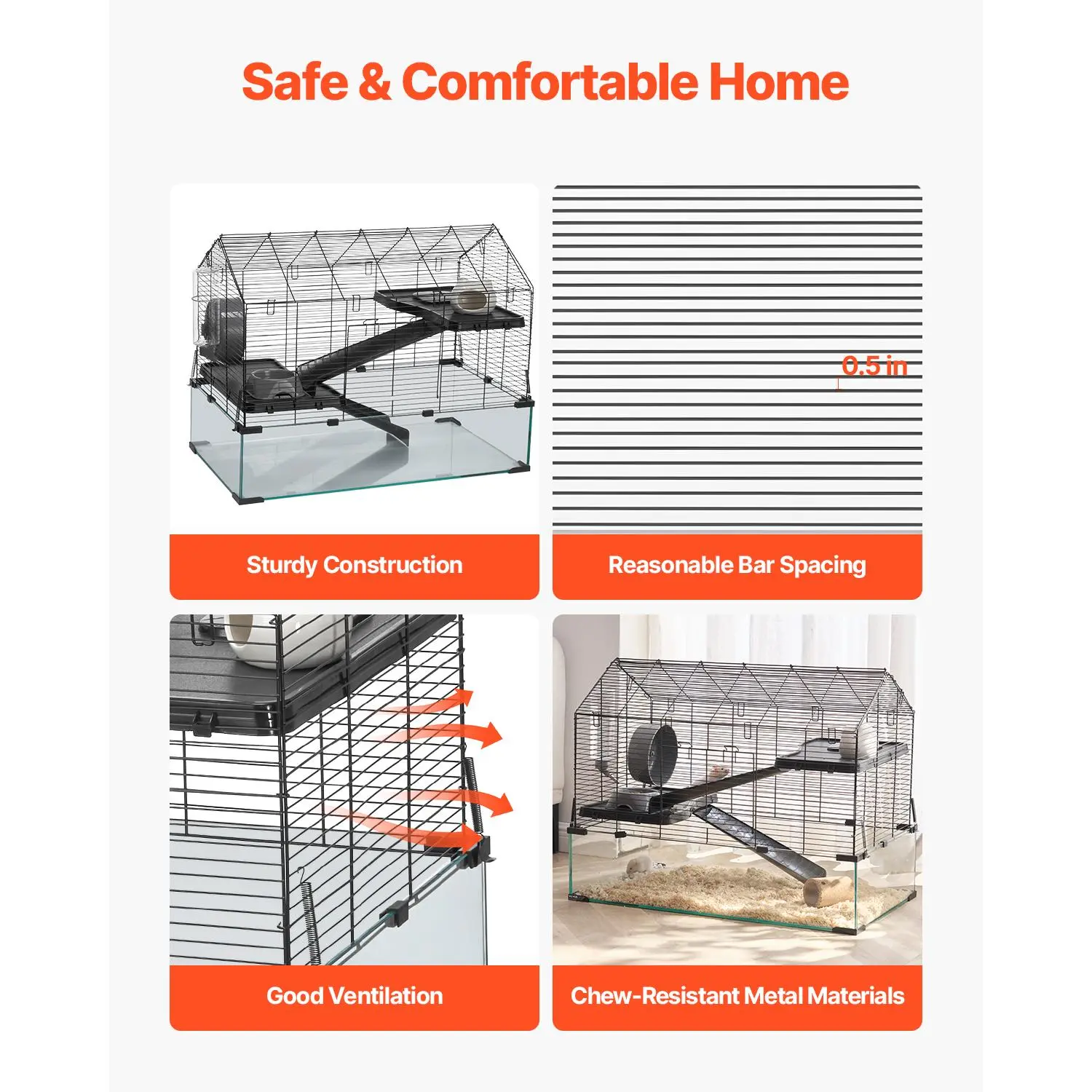 • Security & Durability: Constructed with sturdy metal materials, this hamster cage ensures a secure structure, preventing your hamster from chewing on the bars and extending the cage’s lifespan. It provides peace of mind by prioritizing your pet’s security.
