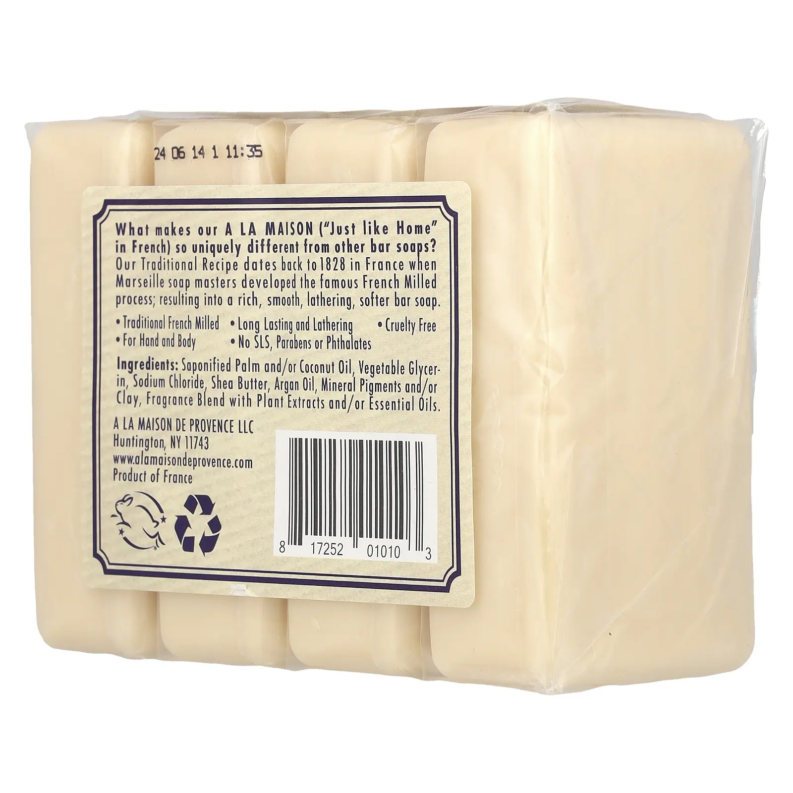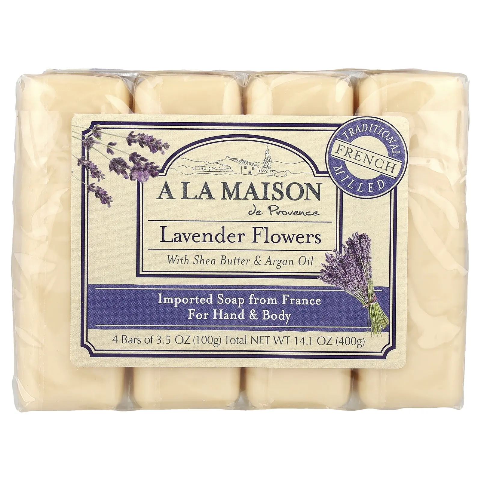5. A La Maison de Provence Hand & Body Bar Soap, Lavender Flowers, 4 Bars, 3.5 oz (100 g) Each