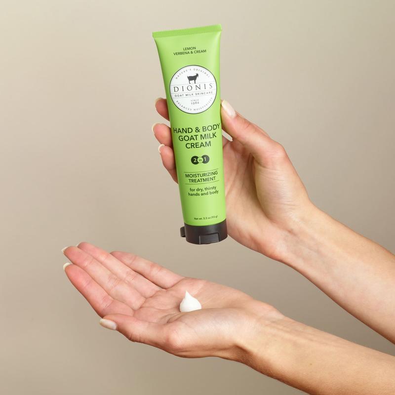 This rich and creamy hand & body goat milk cream is luxurious and powerful enough to help your skin retain moisture and stay hydrated in this amazing verbena & cream fragrance. Well-hydrated skin glows from within, use our goat milk cream to make you look naturally beautiful by keeping your skin soft, smooth, and hydrated - hooray! Best of all, this comes in a travel-friendly 3.3 oz. tube.