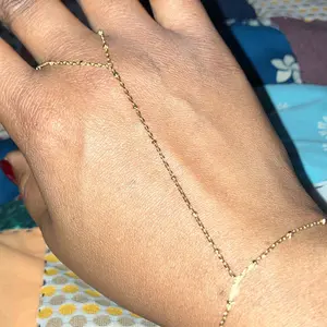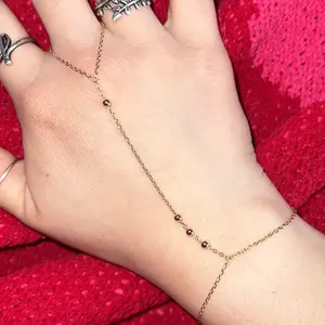 ·Beads: This hand chain is designed to inspire double takes all day—a subtle, sophisticated, and dainty piece combining a bracelet and ring with an added gold bead accent. The ring portion is 4.2 inches, middle chain is 3 inches, and bead is 3mm.