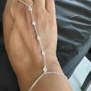 I love the fit and style of this hand chain. It is very unique and charming. I’ve worn it now for a week without taking it off and no tarnishing.