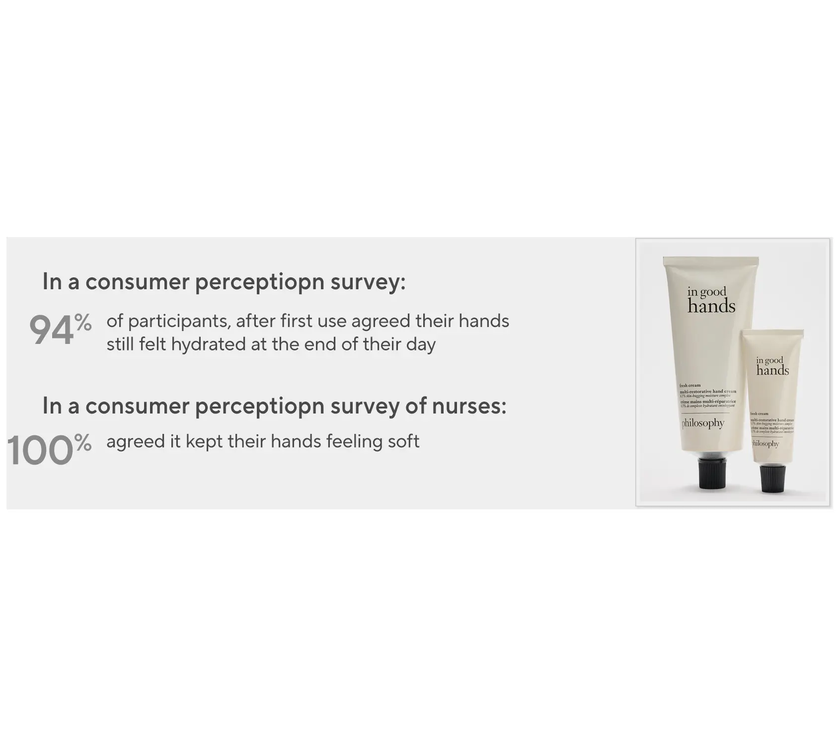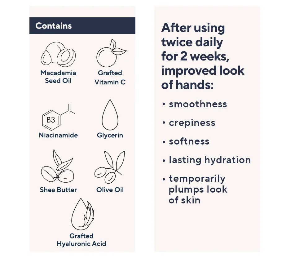 | Ingredients | Unscented In Good Hands Multi-Restorative Hand Cream: Aqua/Water/Eau,Glycerin,Isopropyl Myristate,Cetyl Alcohol,Glyceryl Stearate,Niacinamide,Cetyl Esters,Dimethicone,Stearic Acid,Palmitic Acid,Propanediol,Saccharide Isomerate,Neopentyl Glycol Dicaprylate/Dicaprate,Tridecyl Stearate,Ascorbyl Glucoside,C12-15 Alkyl Ethylhexanoate,Caprylyl Glycol,Polyacrylate Crosspolymer-6,Butyrospermum Parkii (Shea) Butter,Chlorphenesin,Tridecyl Trimellitate,Macadamia Ternifolia Seed Oil,Olea Europaea (Olive) Fruit Oil,Xanthan Gum,Sodium Hydroxide,Sodium Citrate,Trisodium Ethylenediamine Disuccinate,Adenosine,Citric Acid,Methylpropanediol,Glycyrrhiza Glabra (Licorice) Root Extract,Hyaluronic Acid,Silanetriol. Fresh Cream In Good Hands Multi-Restorative Hand Cream: Aqua/Water/Eau,Parfum/Fragrance,Silanet |