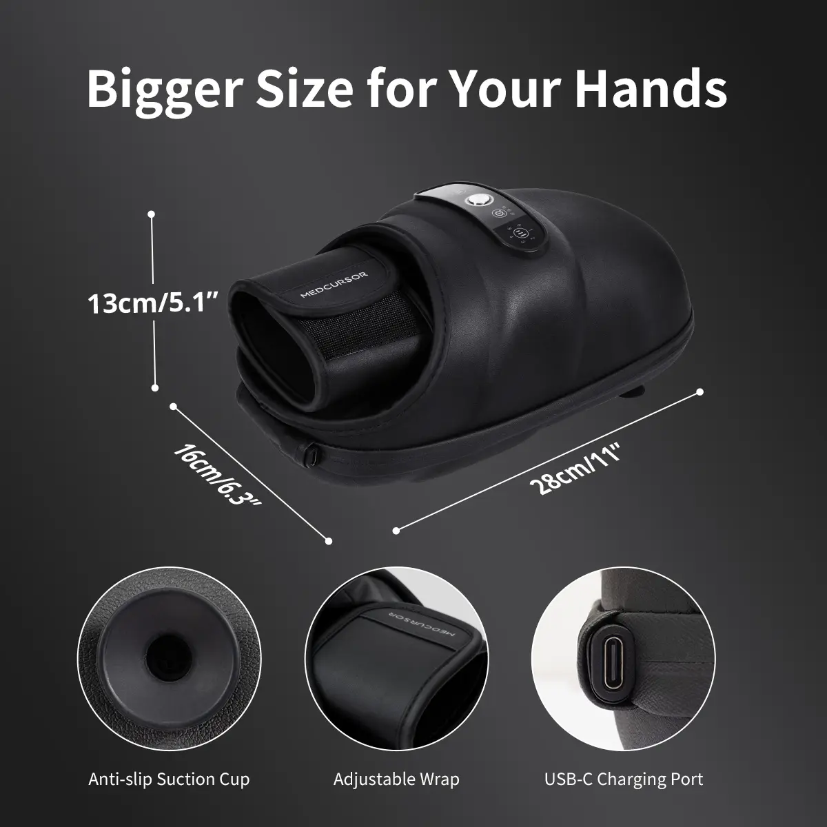 Ideal for parents, spouses, and partners. Check hand size compatibility before purchasing. A perfect gift for family members. The Medcursor hand massager uses air compression to apply pressure on the hand and wrist, rather than providing a rolling massage or other massage functions.