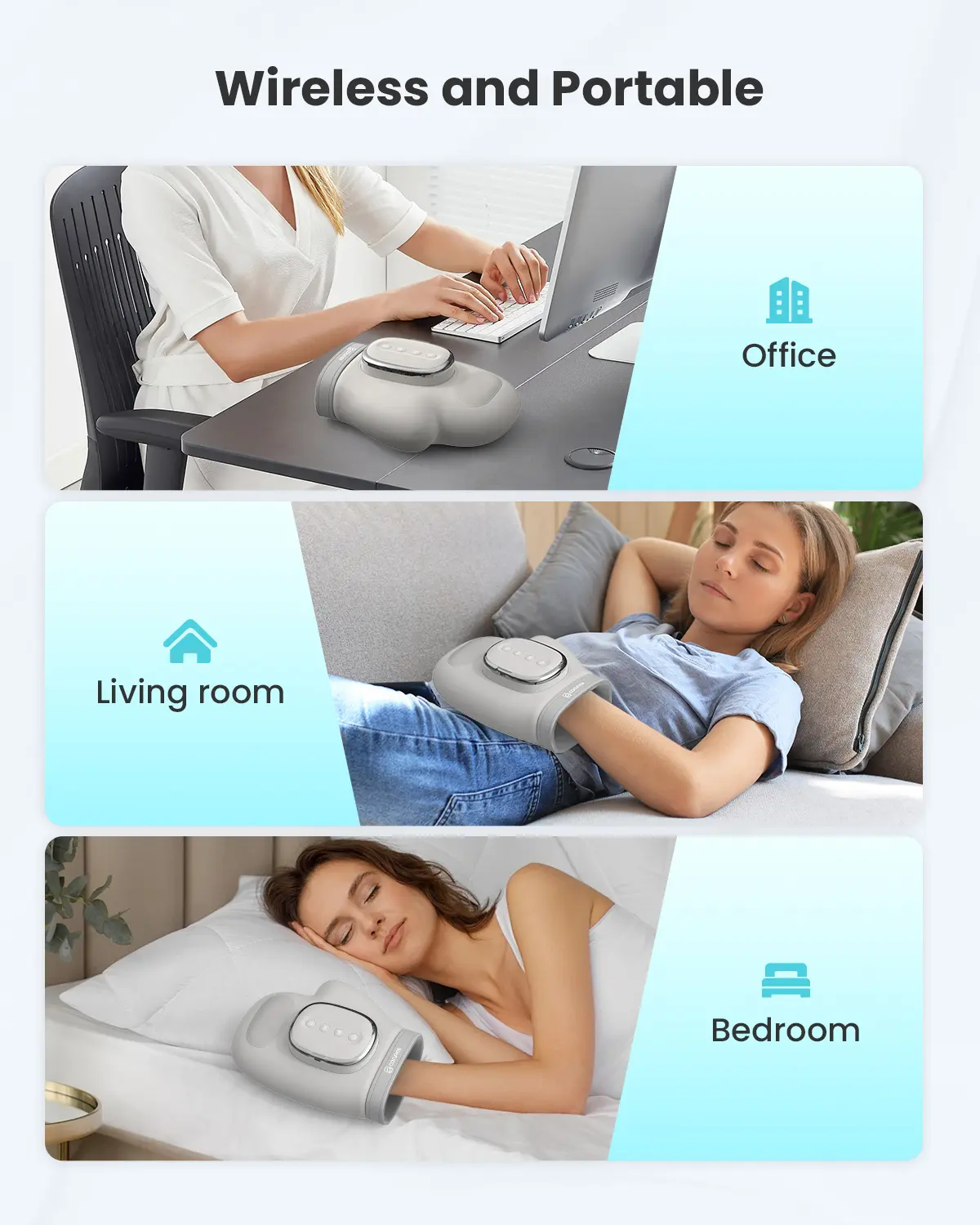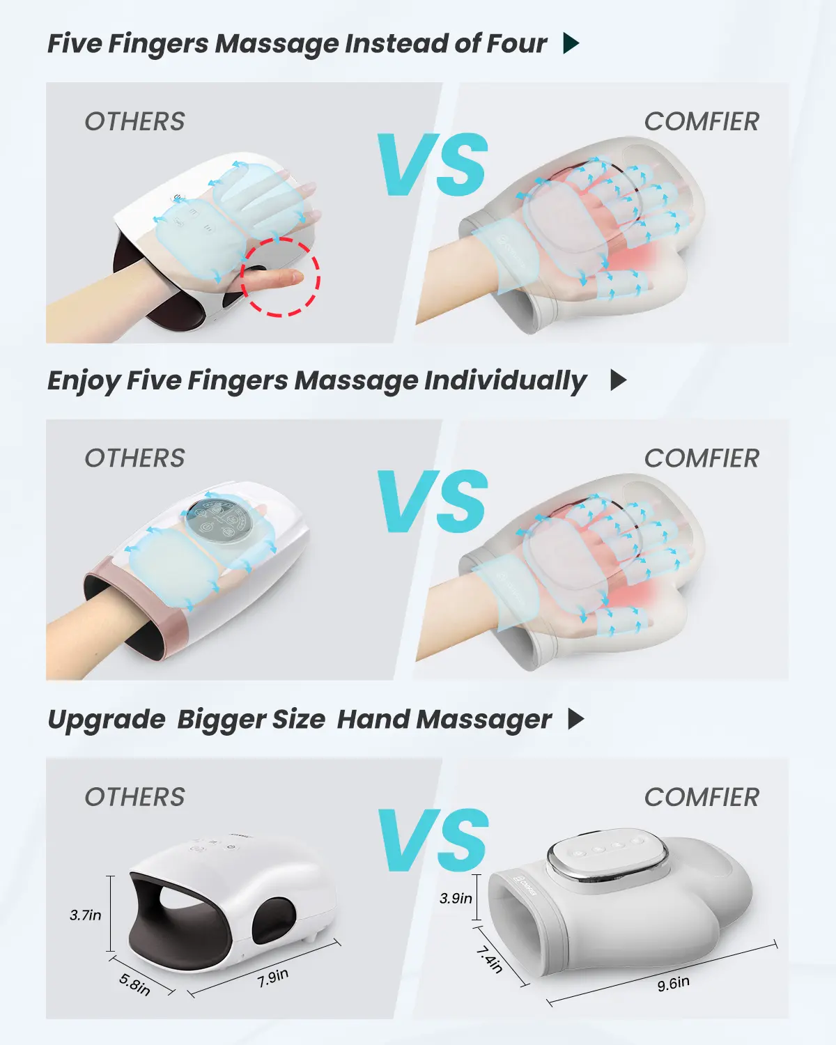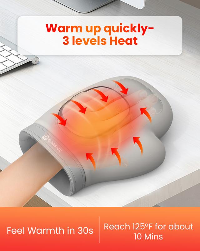 ·Effectively relieve carpal tunnel,Comfier hand massager for pain relief is designed to provide a comprehensive massage experience to help alleviate discomfort and pain caused by carpal tunnel.It delivers three types of massage therapy:compression,vibration and heating.Our heating hand massager provides effective therapy for your hands and wrists,leaving you feeling relaxed, refreshed and free from pain.