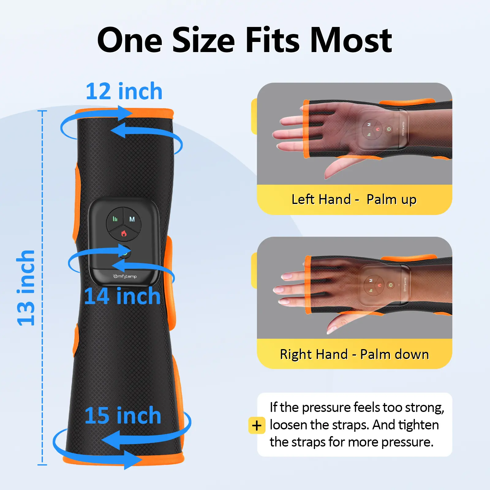 My product didn't inflate. I had a lot of hope that this product could help my wrist and hand get relief. However, it was really a bully heating pad with vibrations.