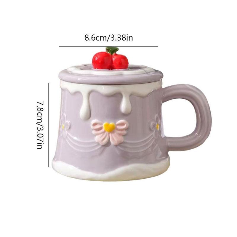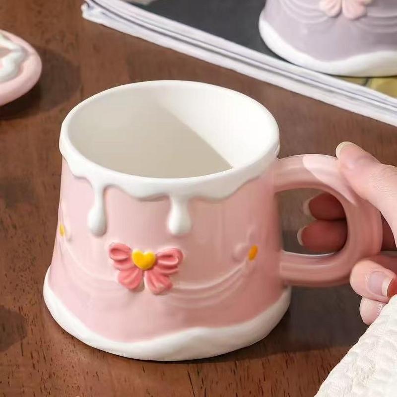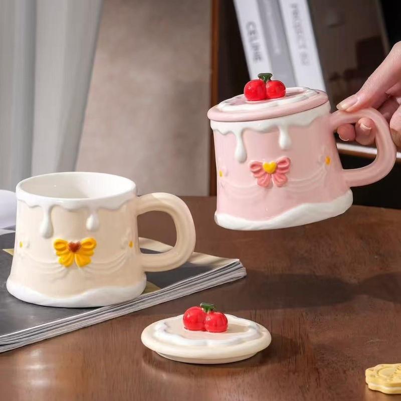 Creative Hand-Drawn Cake Birthday Cup, Ceramic Mug with Lid, Cute Girl Water Cup, Gift Cup, Secret Cup, Glass Coffee Cup, iced Coffee Cups,ceramic water cup,water cup girl,girl pouring water in a cup by herself,Funny Mug