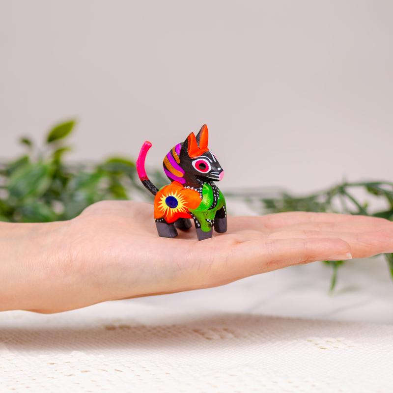 Hand-carved and painted by the talented hands of artisans in Oaxaca, Mexico, these wooden figurines are inspired by different animals found in their landscapes. These detailed alebrijes are hand-painted with different motifs such as flowers and in bright colors, typical of Oaxacan culture.