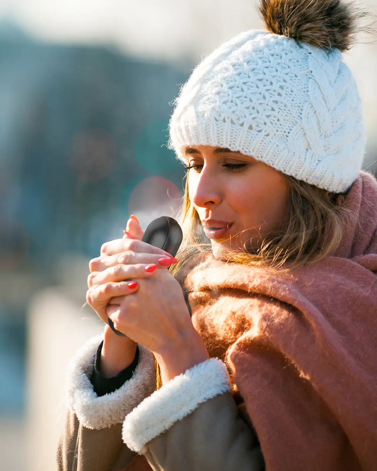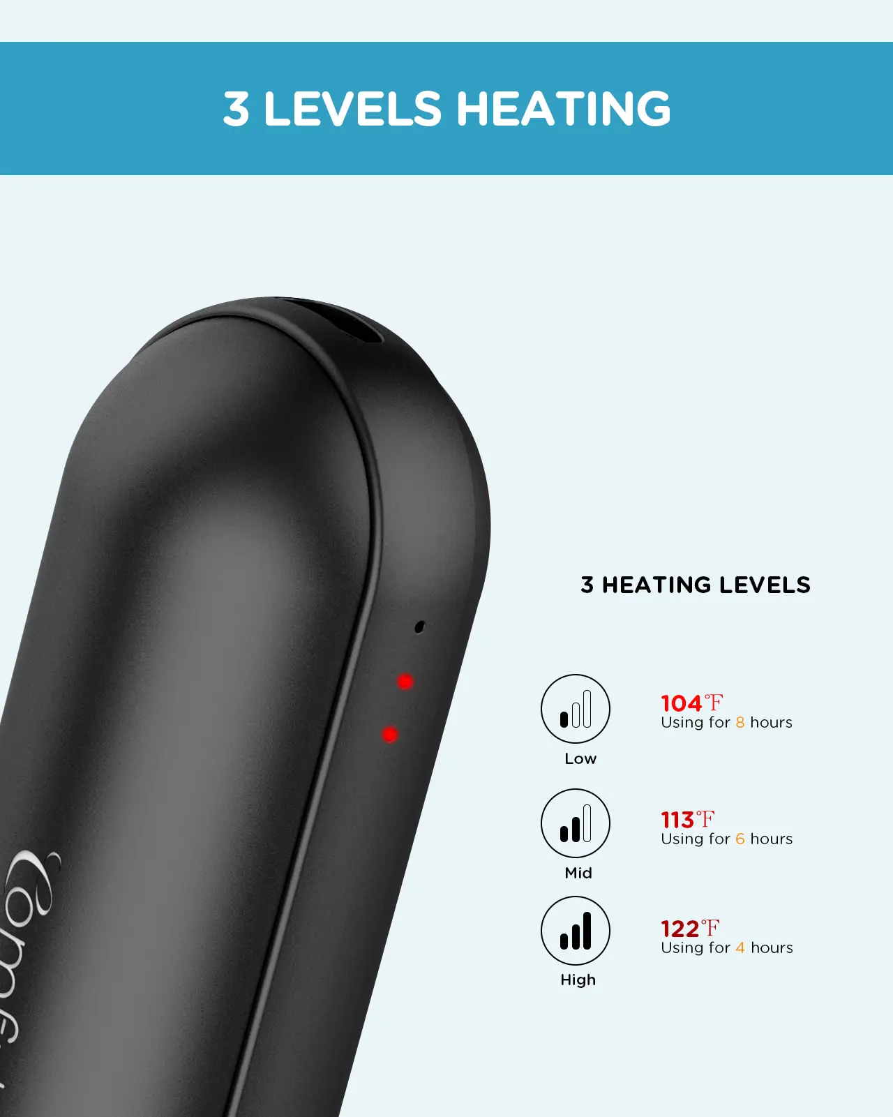 The hand warmer features a high-tech aluminum and ABS shell, offering a smooth touch. Its compact size and lightweight design make it easy to hold and carry. Perfect for outdoor use in winter. 🌨️