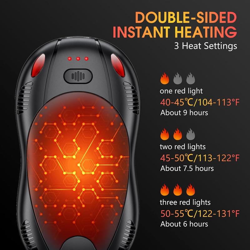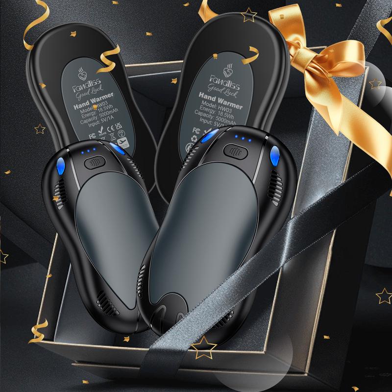 ·USB-C RECHARGEABLE HAND WARMER: FANDLISS electric hand warmers with built-in 5000mAh*2 rechargeable batteries, the double-sided heated hand warmer comes with a 2-in-1 split USB charging cable, which allows you to charge two hand warmers at the same time, saves charging time and provides quick warmth. Ideal gift for family and friends.