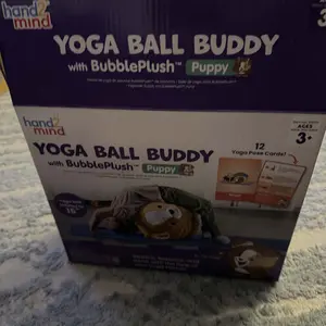 LOVE LOVE LOVE this yoga set! This is perfect for grands. I love doing yoga with them. The doggy ball is so cute.