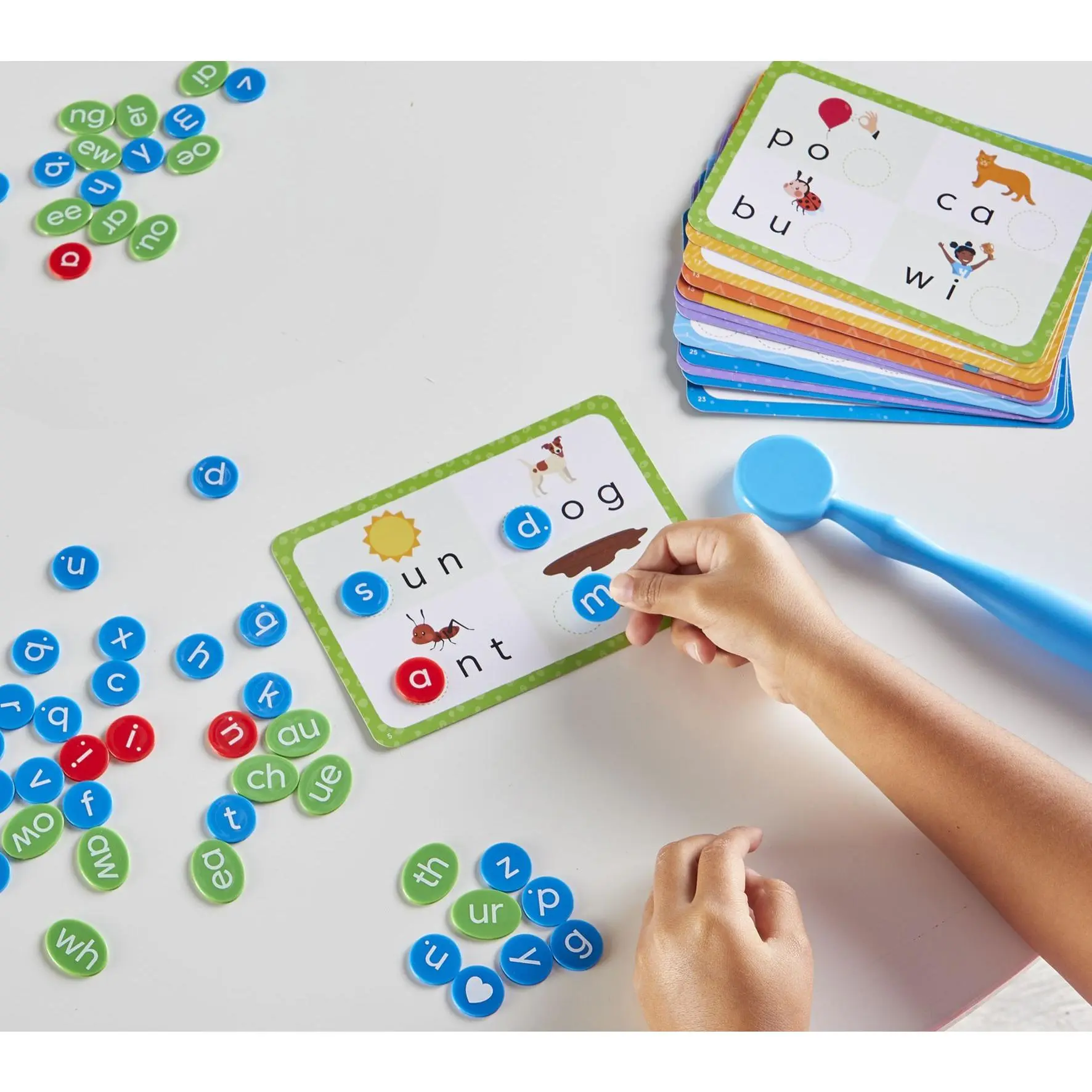 Kids have a blast using the magnetic wand and different types of chips to learn early literacy skills, including matching uppercase and lowercase letters, learning initial and ending sounds, and blending and segmenting sounds. From hand2mind.