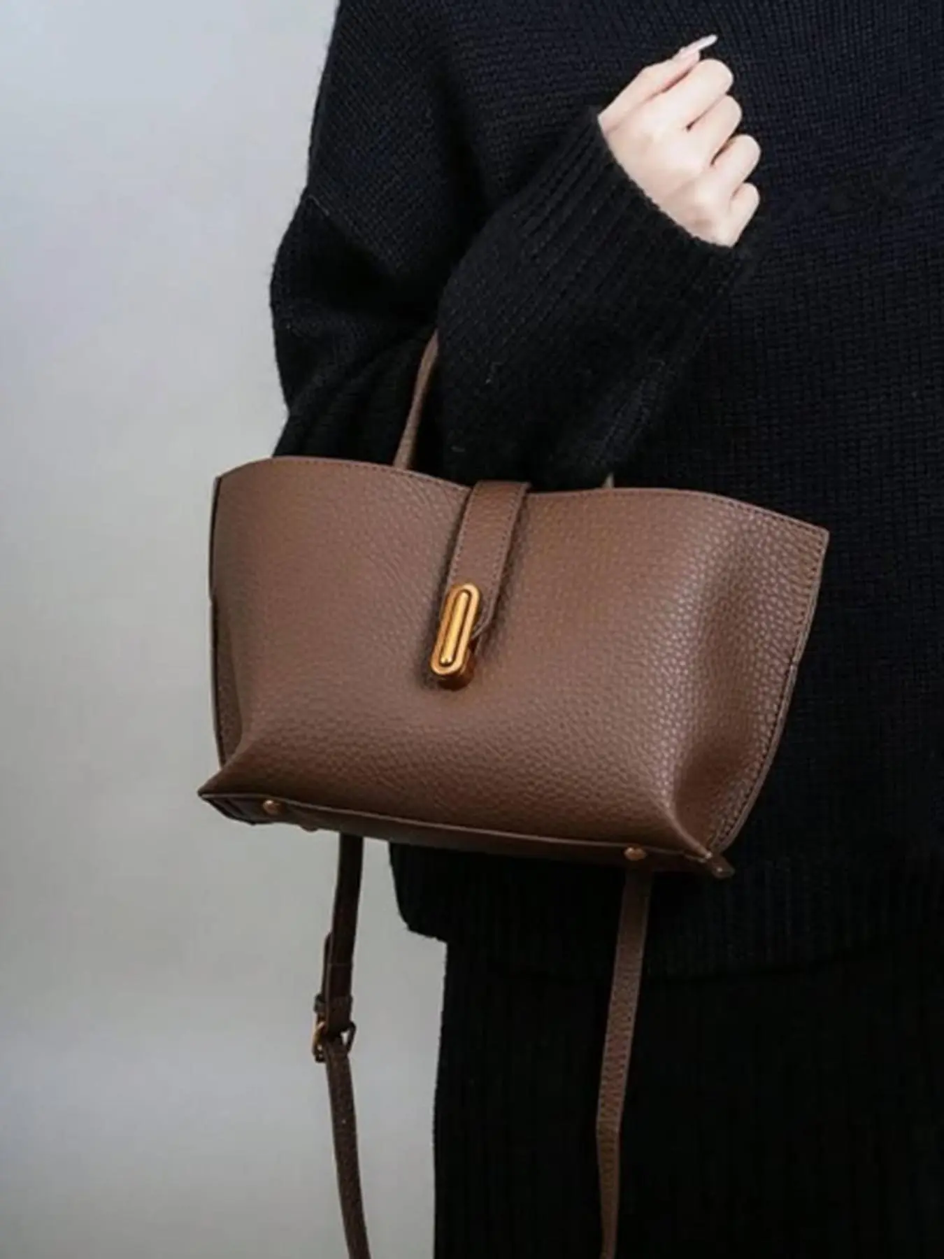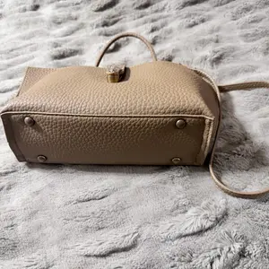 Cute style, love the clasp, but the strap is very thin and cheap looking. There is a smaller purse inside the body where the strap attaches. It makes the purse unbalanced you use the longer strap. The purse smelled horribly when I opened the package. It's starting to wear off now after two weeks.
