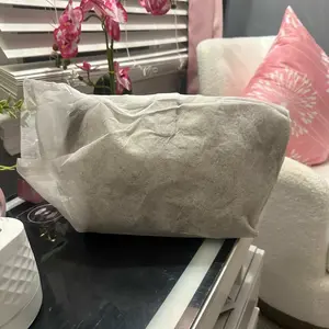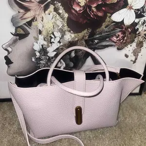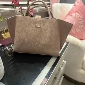 Just got this bag today. Shipping time was reasonable. This material is so soft! The color is even better in person. It’s a perfect blush for spring/summer. Best 12ish dollars I’ve spent in a while.
