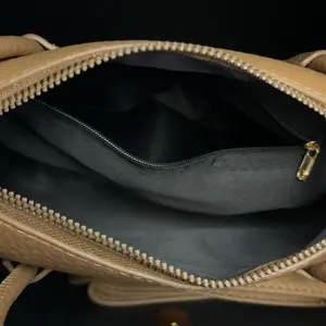 The quality of this bag feels amazing. It’s not plastic. It is leather the pouch that was that came with. It is a great little. Insert is secured in the bag. You cannot remove the pouch from the purse. You’ll be putting your keys wallet in that part of the purse and maybe some little odds and ends