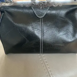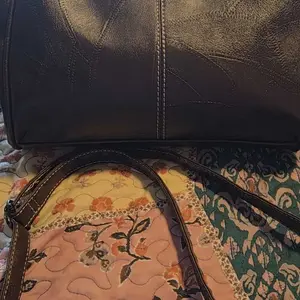 Pretty bag, roomy enough to hold a lot,I have a small organizer inside,working on decorating it, for the price it neat.