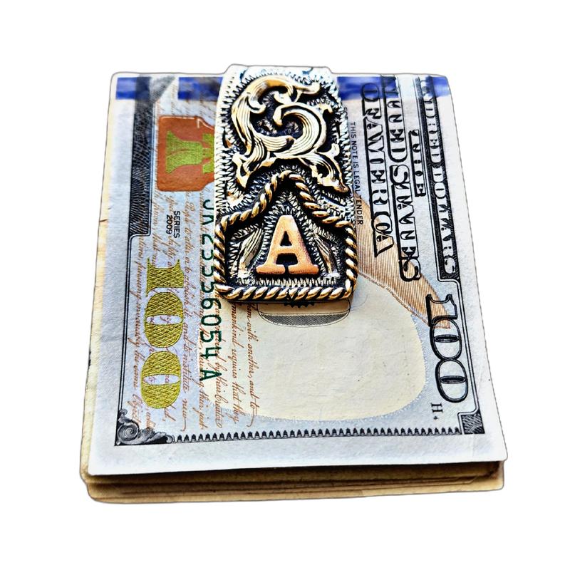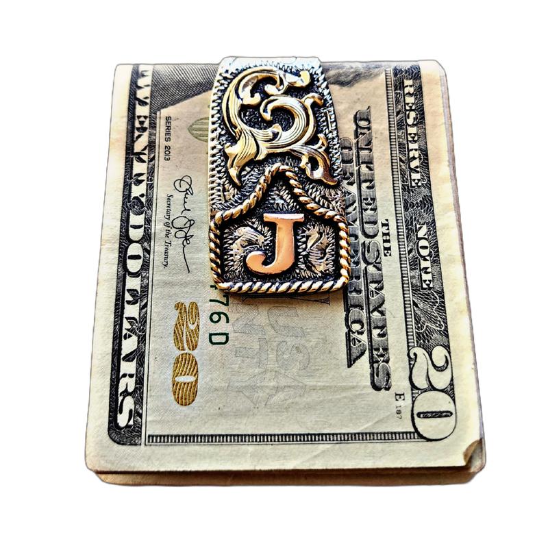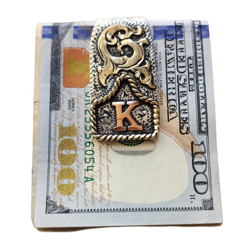 Each money clip is hand engraved with your custom initial. This personalized touch makes it a unique accessory. Ideal for anyone needing a custom initial money clip.