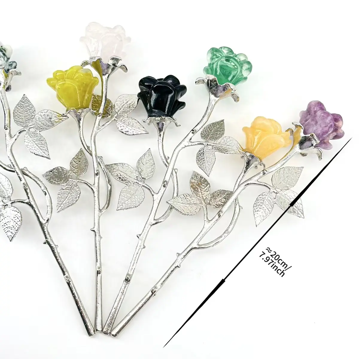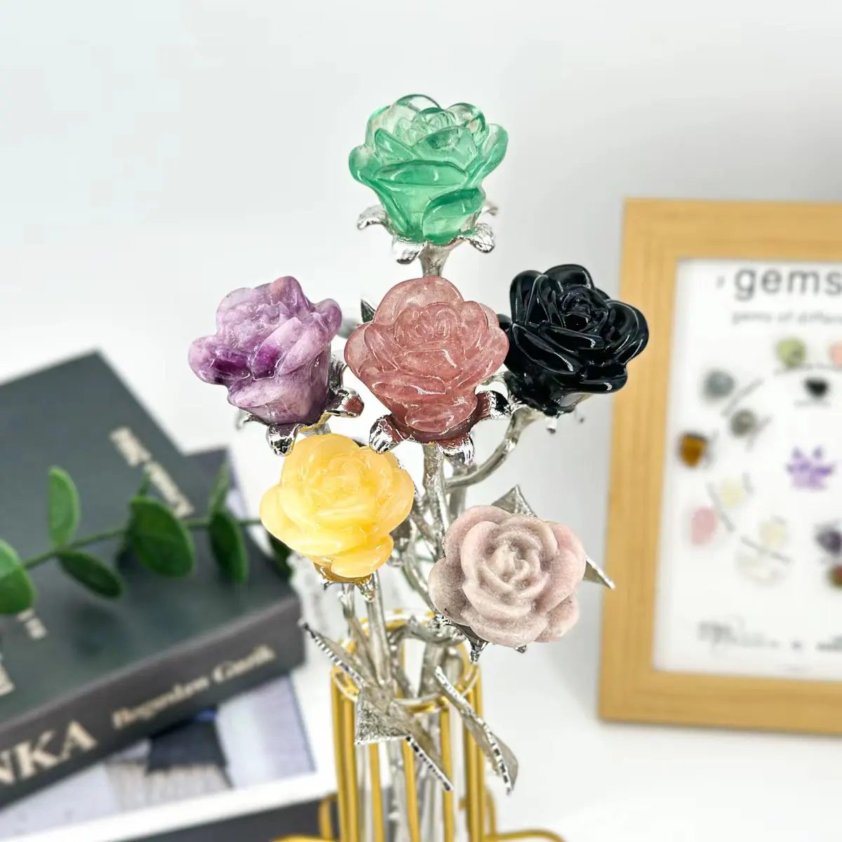 5. 【Star Gate】1 count Handcrafted Crystal Rose Bouquet | Genuine Gemstone Flowers with Silver Stems