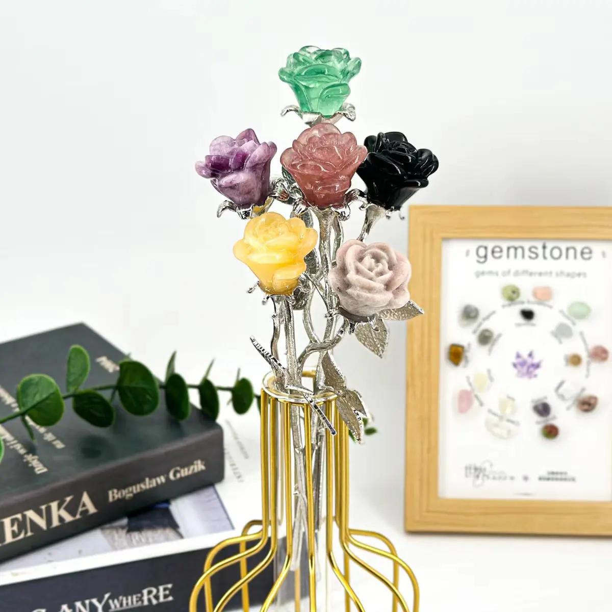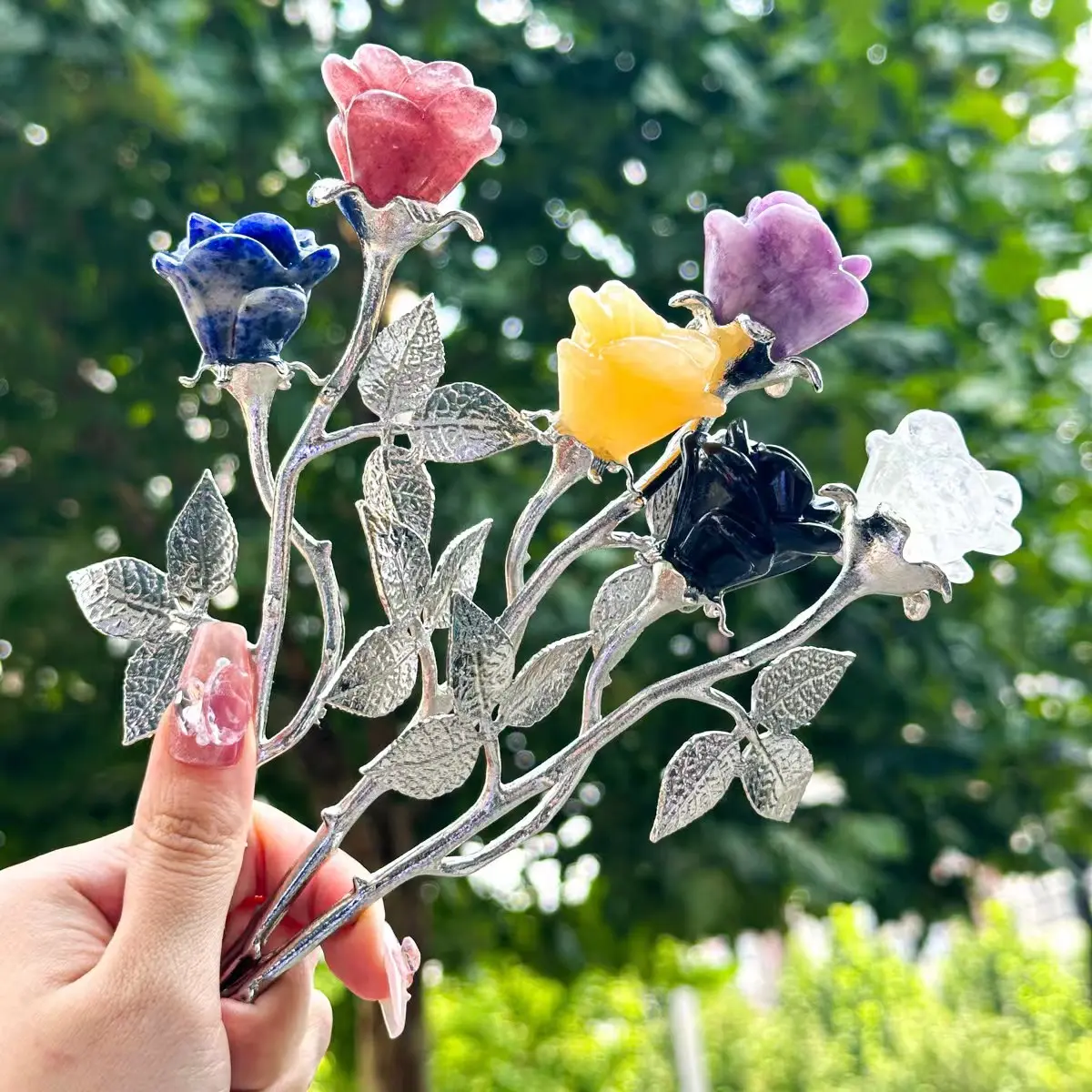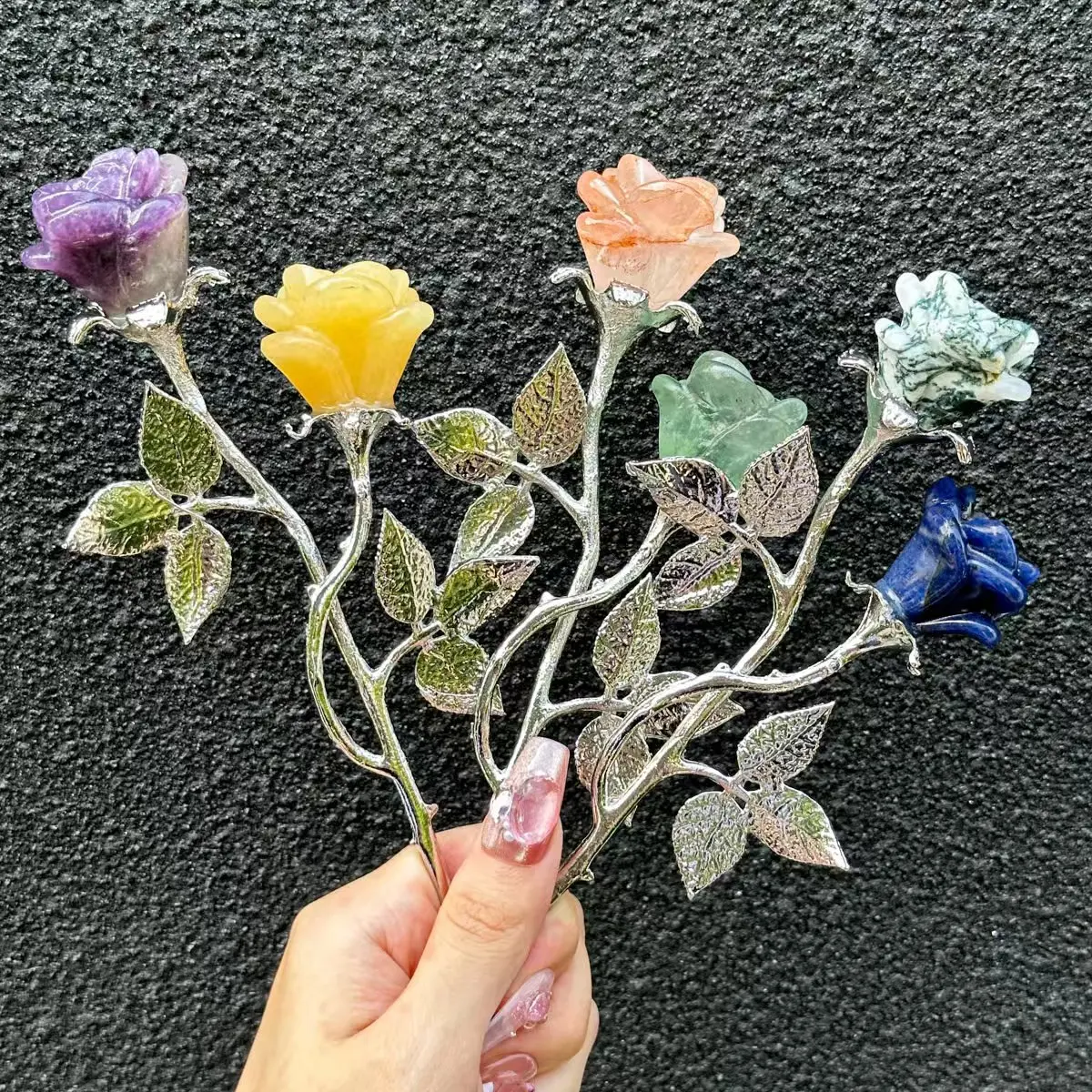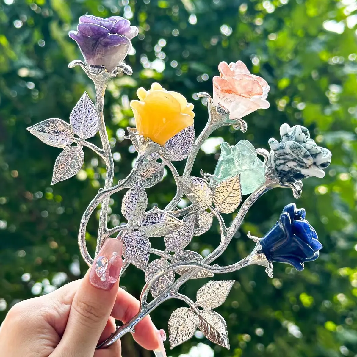 【Star Gate】1 count  Handcrafted Crystal Rose Bouquet | Genuine Gemstone Flowers with Silver Stems
