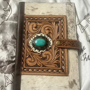 Iâm obsessed with my new Bible cover from Western Cowgirl Shop! The genuine handmade leather is stunning, the cowhide details are even better in person, and the turquoise gem + painted leather are so eye-catching. Love the pocket slots and snap closure. Amazing quality and such a great deal too!