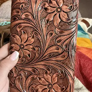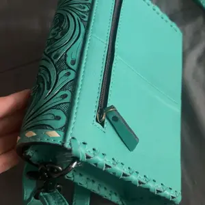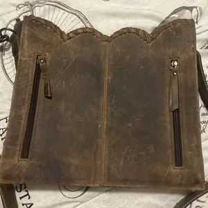 Cute little crossbody. Has a lot of space to be little. Love the tooling and the strap even had tooling on it as well. Thank you for another great purchase