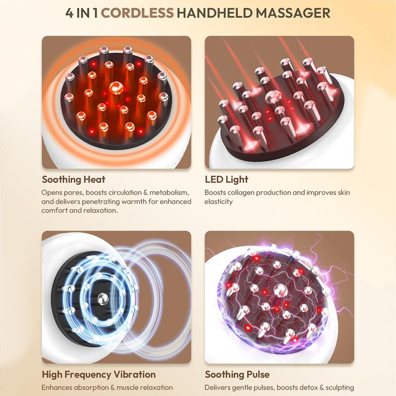 Upgrade your daily self-care routine with this handheld body massage tool, designed for comfortable full-body use. Combining gentle heat, vibration, soothing pulse, and red light, it provides a relaxing massage experience that helps ease everyday muscle tension and enhance overall comfort. The ergonomic shape allows easy use on legs, hips, arms, and abdomen, while the lightweight, rechargeable design makes it convenient for use at home, in the office, or while traveling. A simple and enjoyable way to support daily relaxation and body care.