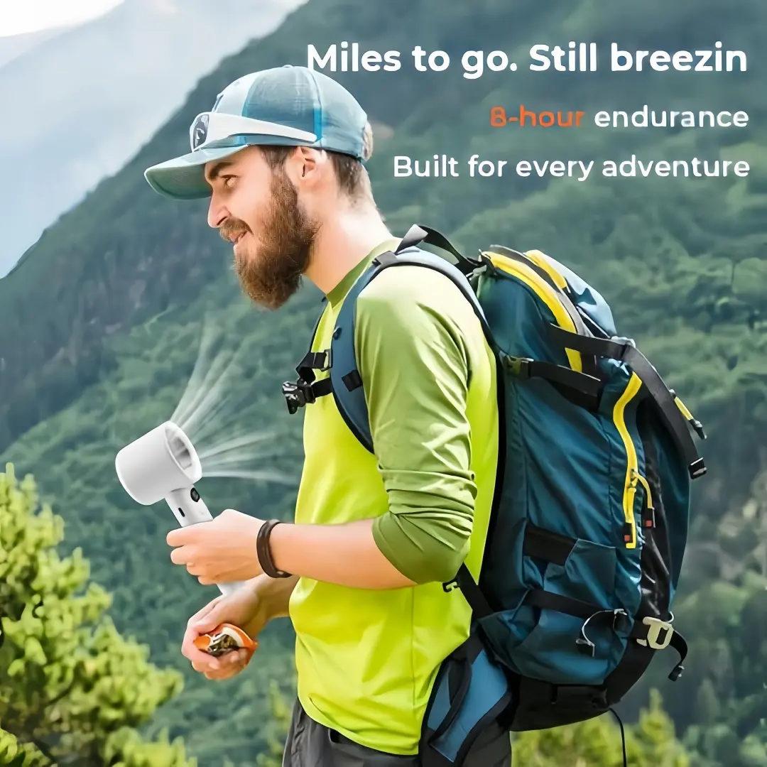 With an 1800mAh battery, this fan provides up to 8 hours of runtime. Charge via USB-C, compatible with power banks and laptops. Ideal for hiking, shopping, or work. Stay cool throughout the day without interruption. This fan is your reliable companion for any activity.