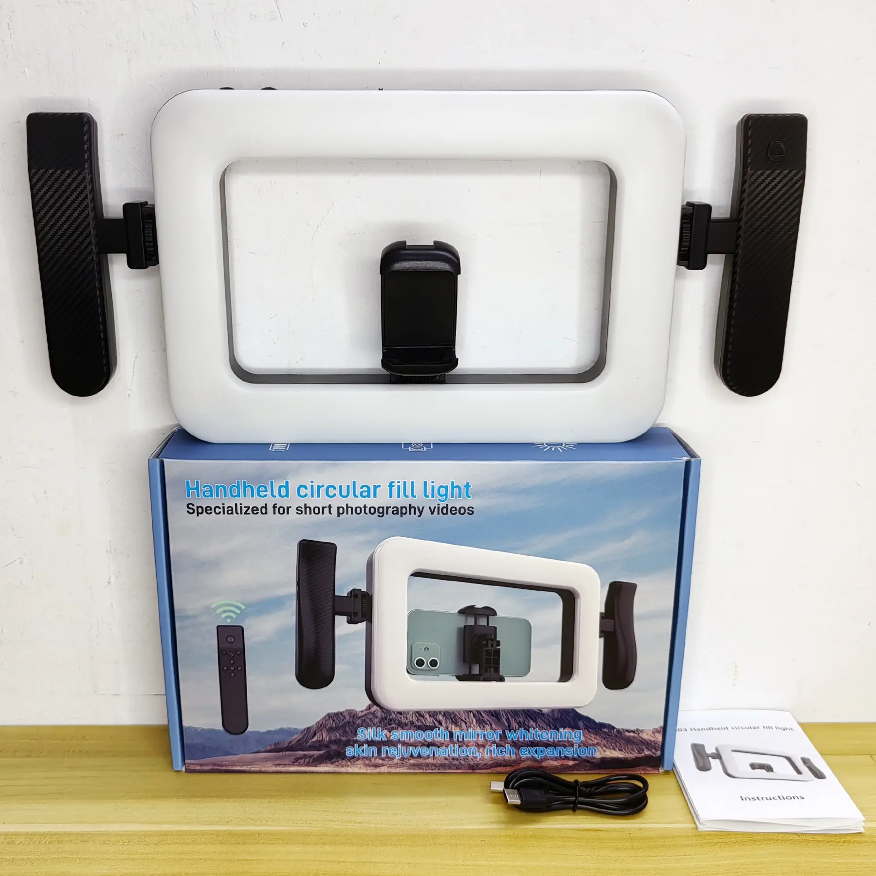 Handheld Multifunctional Circular Fill Light with Handle, Built in Wireless Remote Control, 3600mah Rechargeable Battery, Three Color Temperatures, Portable Selfie Lamp, Phone Accessories, Gift
