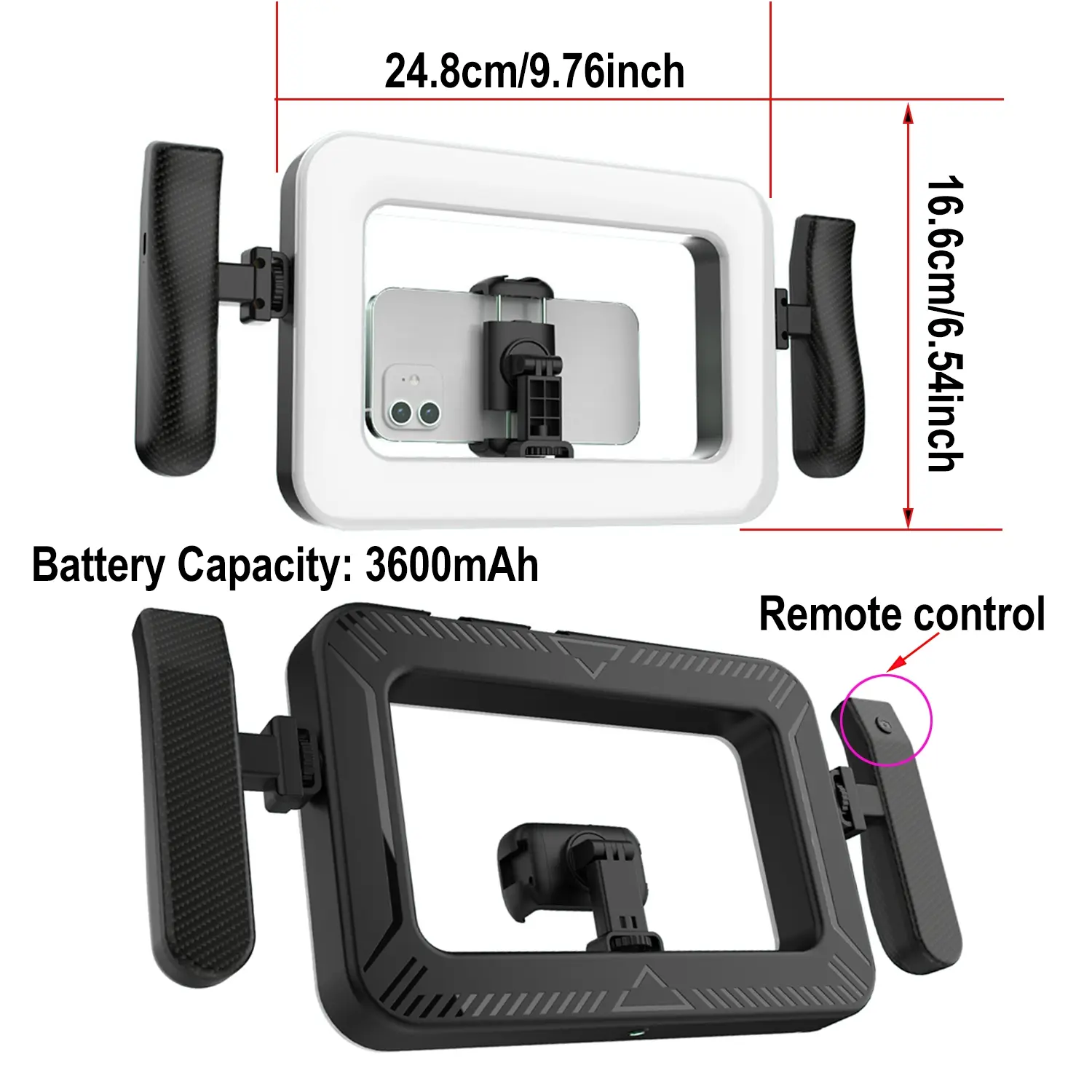 【3600mAh Rechargeable】: Features a 3600mAh rechargeable battery, providing ample power for extended use during photo shoots or videos.