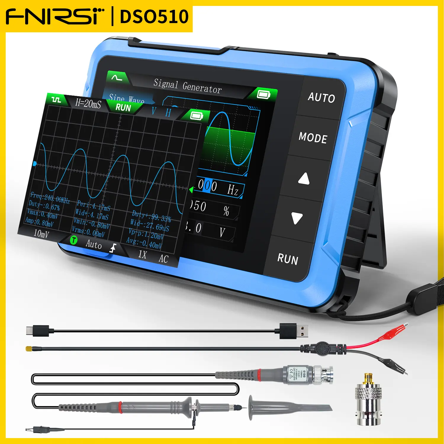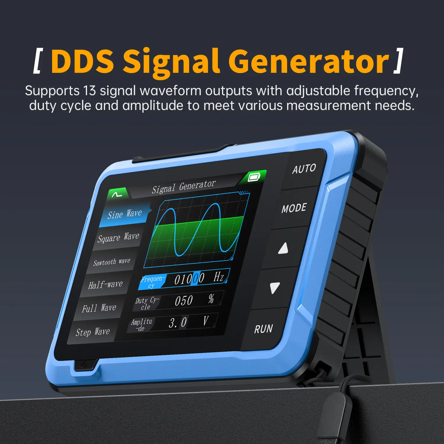 ✦ DDS signal generator: FNIRSI DSO-510 can output 13 kinds of waveforms, and the maximum waveform output frequency is up to 50 KHz, which can meet the needs of diversified signal simulation and improve the efficiency of testing and analysis.